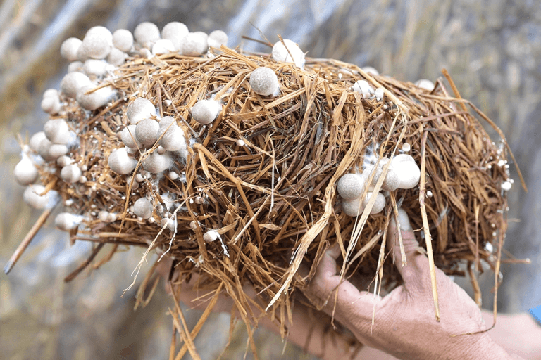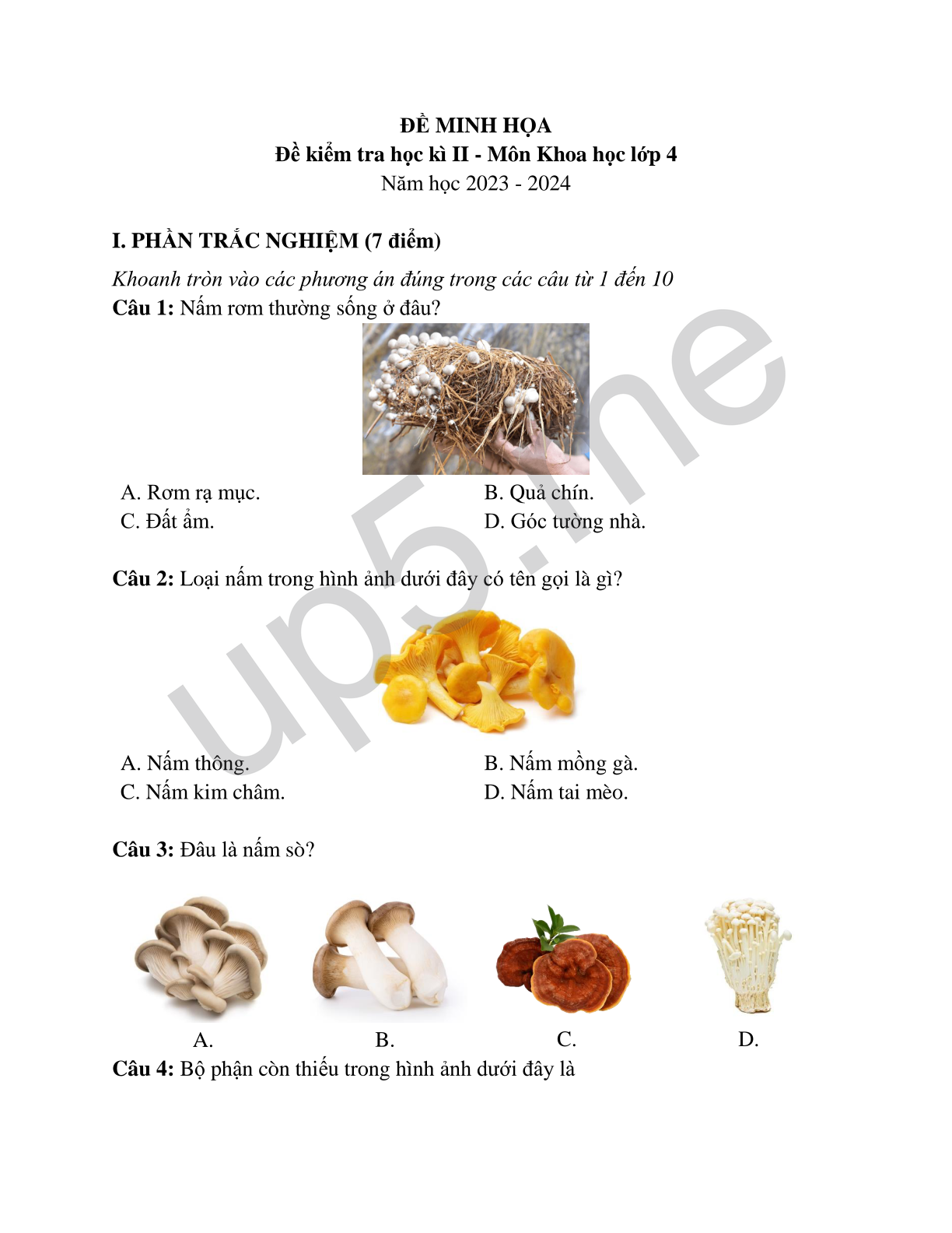 | A. Rơm rạ mục.C. Đất ẩm. | B. Quả chín.D. Góc tường nhà. |