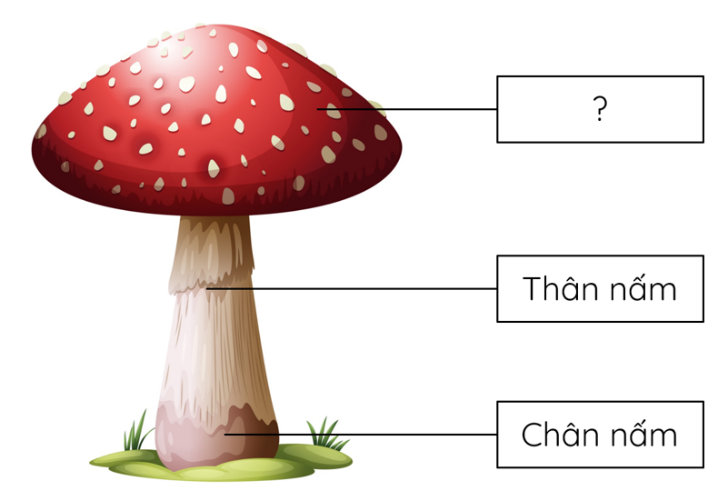 | A. quả nấm.C. đỉnh nấm. | B. ngọn nấm.D. mũ nấm |