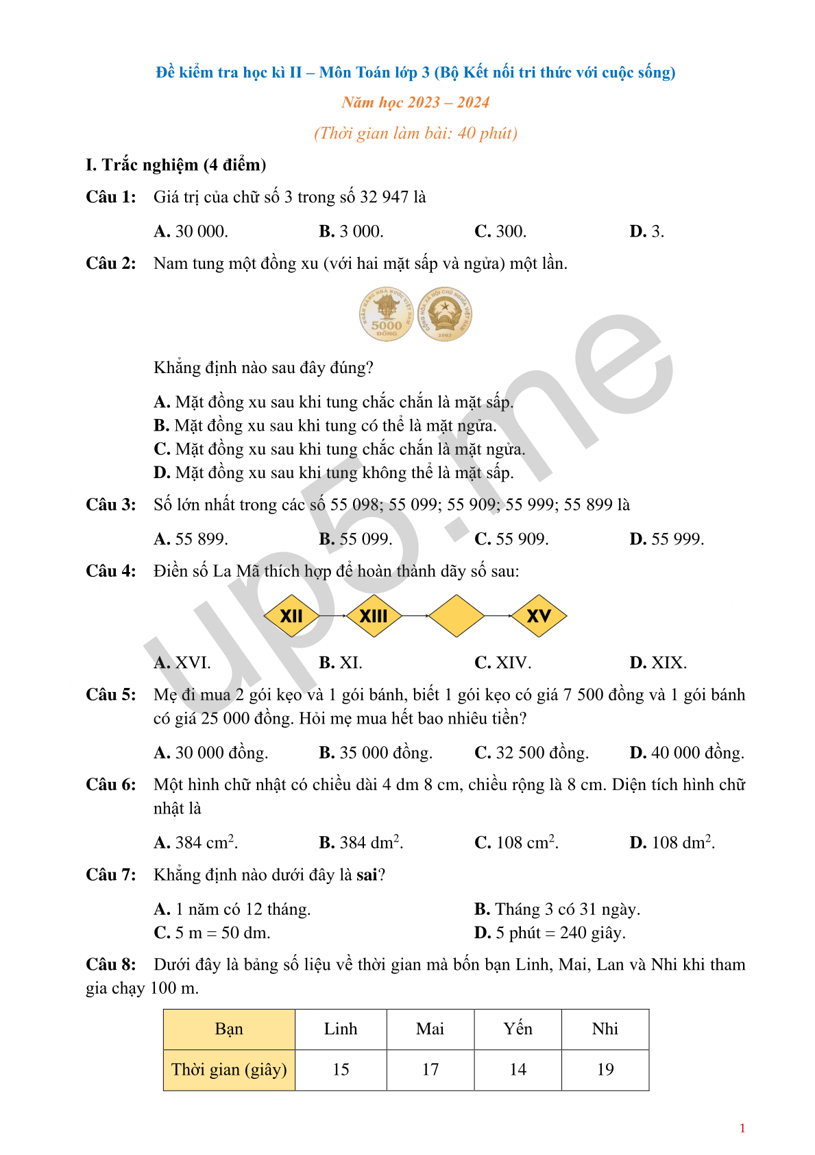 (Thời gian làm bài: 40 phút)