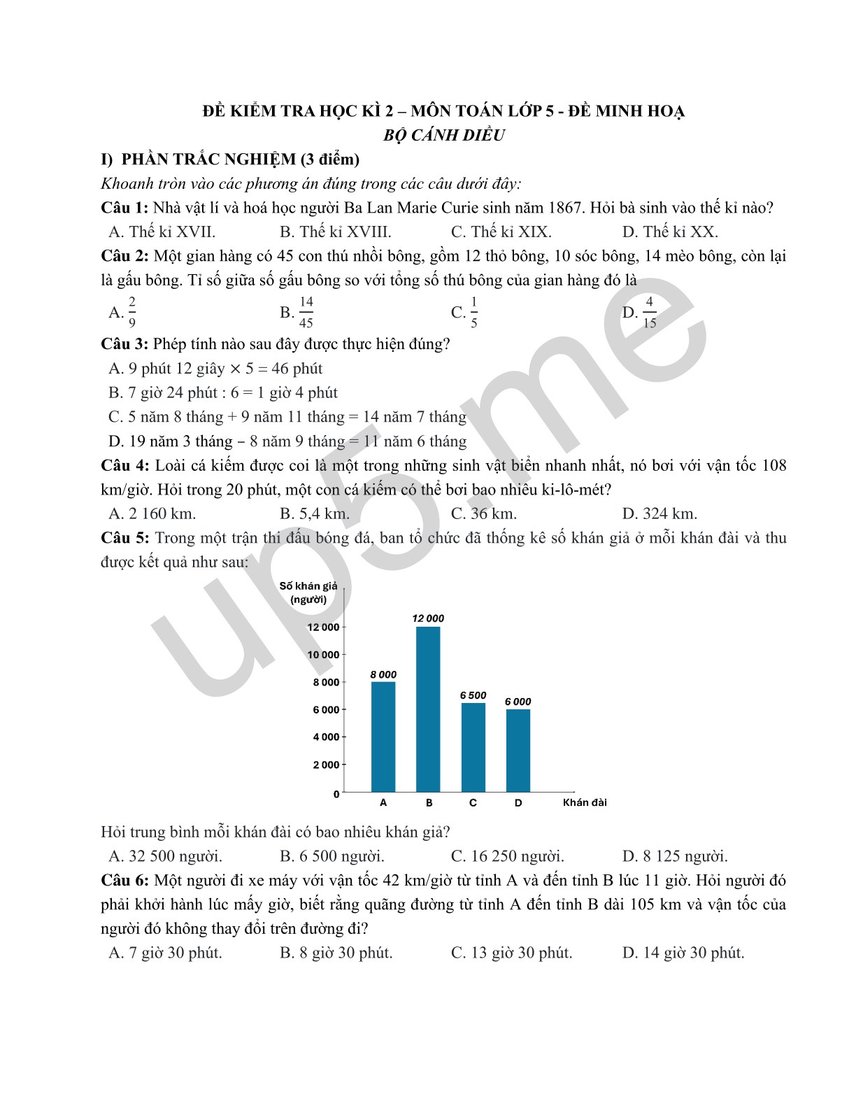 ĐỀ KIỂM TRA HỌC KÌ 2 – MÔN TOÁN LỚP 5 - ĐỀ MINH HOẠ