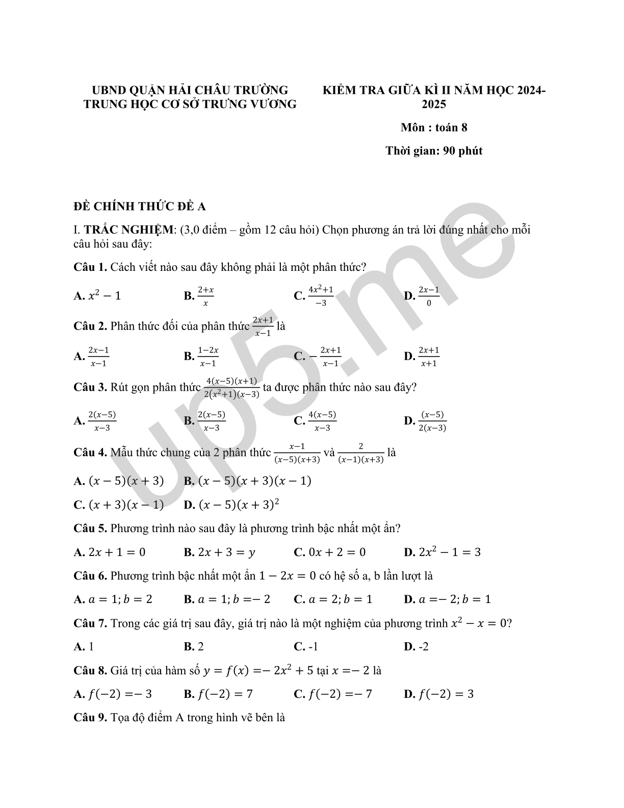 ĐỀ CHÍNH THỨC ĐỀ A