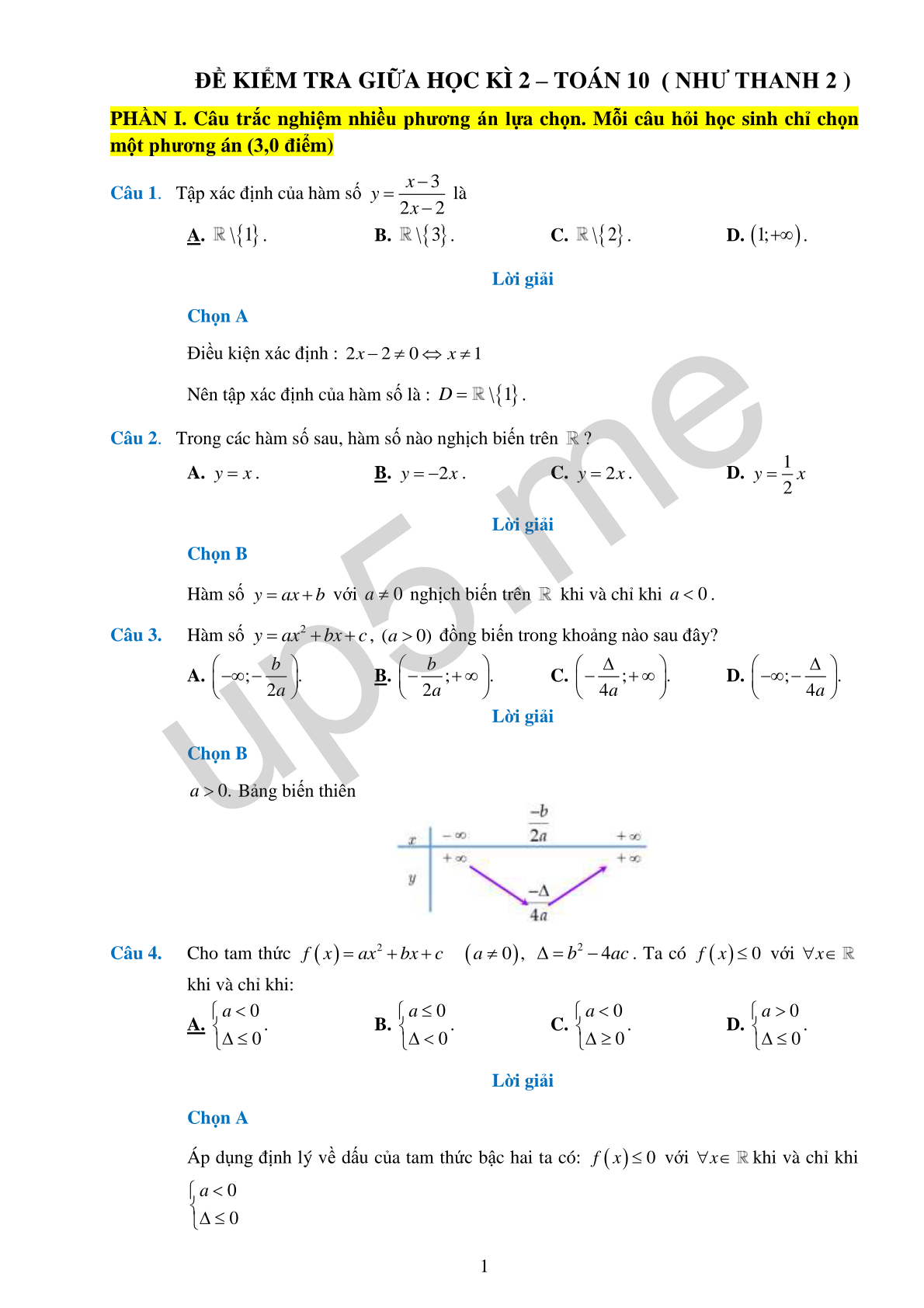 ĐỀ KIỂM TRA GIỮA HỌC KÌ 2 – TOÁN 10 ( NHƯ THANH 2 )