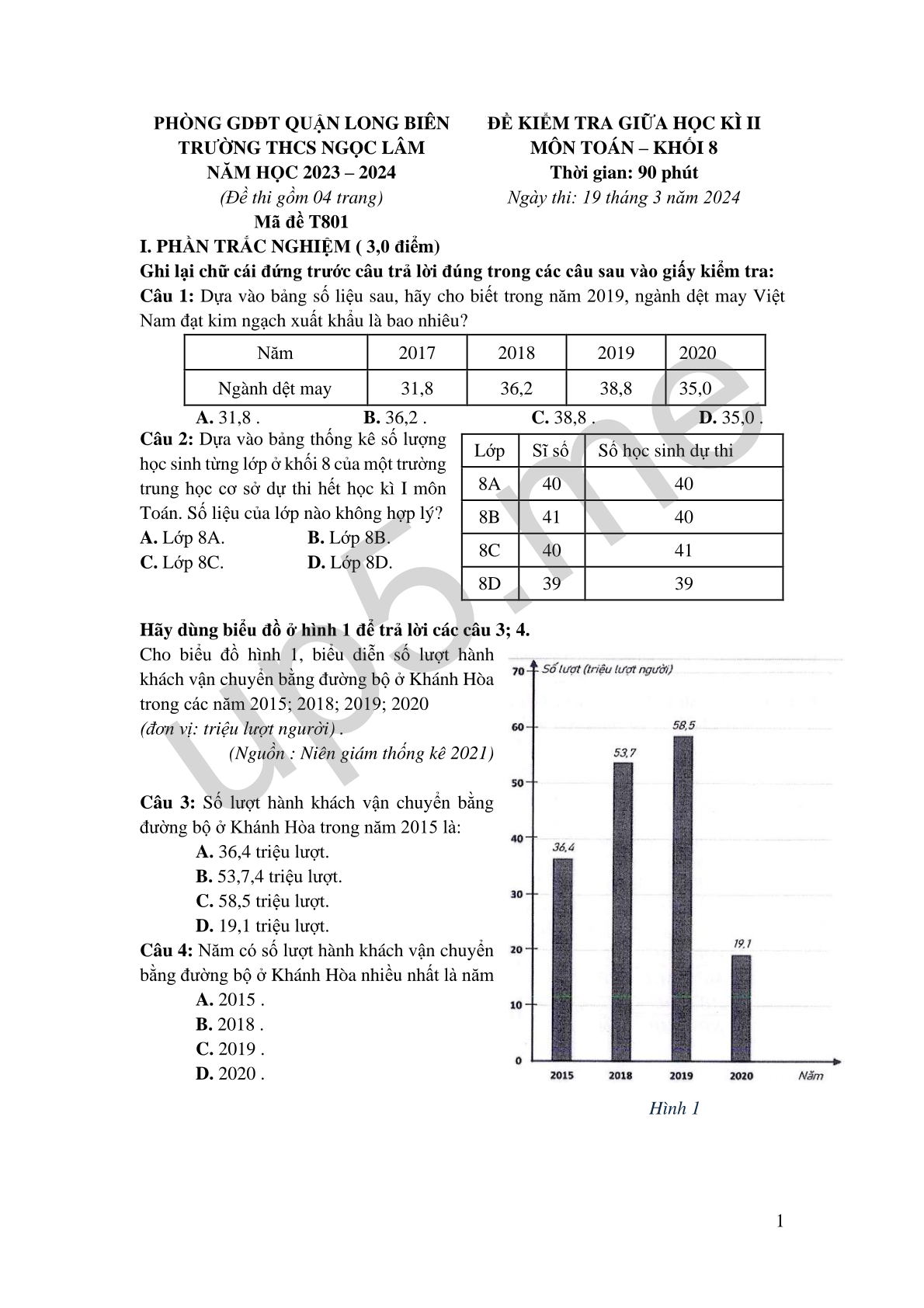PHÒNG GDĐT QUẬN LONG BIÊN TRƯỜNG THCS NGỌC LÂM NĂM HỌC 2023 – 2024 Mã đề T801 |