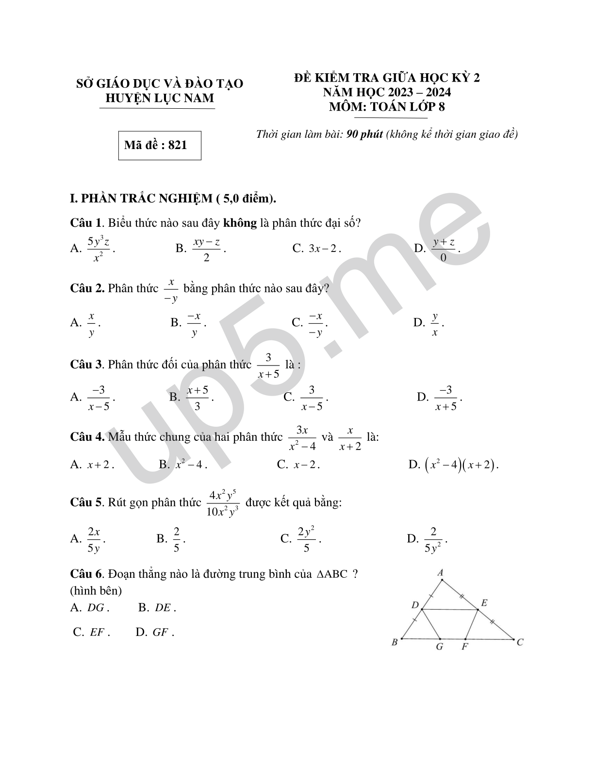 ĐỀ KIỂM TRA GIỮA HỌC KỲ 2 NĂM HỌC 2023 – 2024 MÔN: TOÁN LỚP 8 |