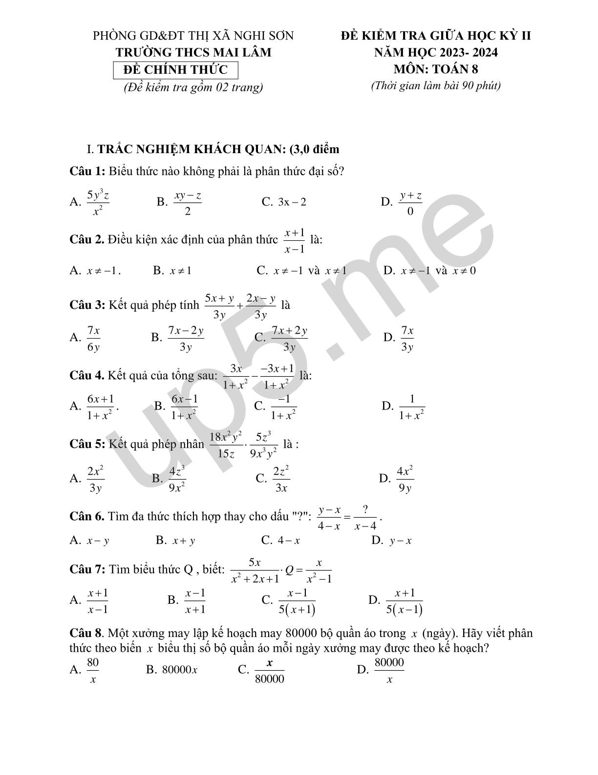 PHÒNG GD&ĐT THỊ XÃ NGHI SƠN TRƯỜNG THCS MAI LÂM ĐỀ CHÍNH THỨC (Đề kiểm tra gồm 02 trang) |