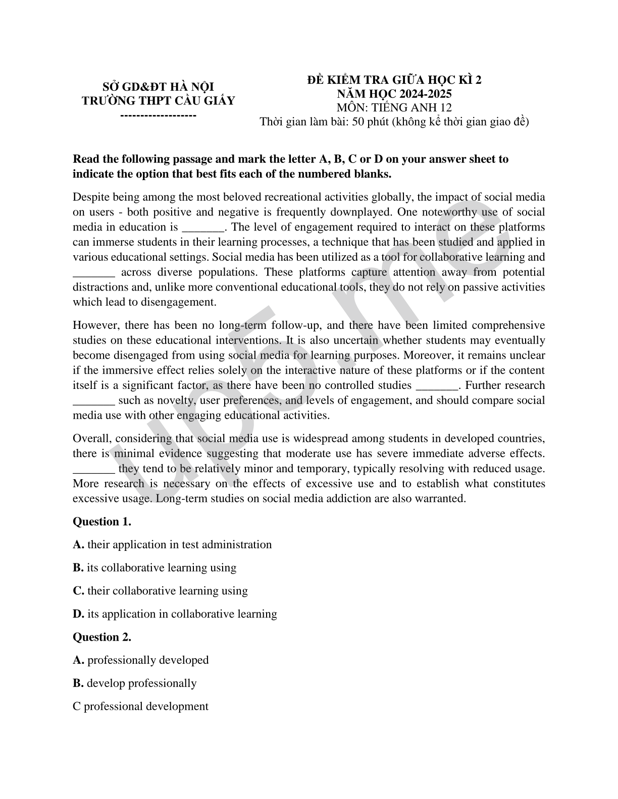 ĐỀ KIỂM TRA GIỮA HỌC KÌ 2 |