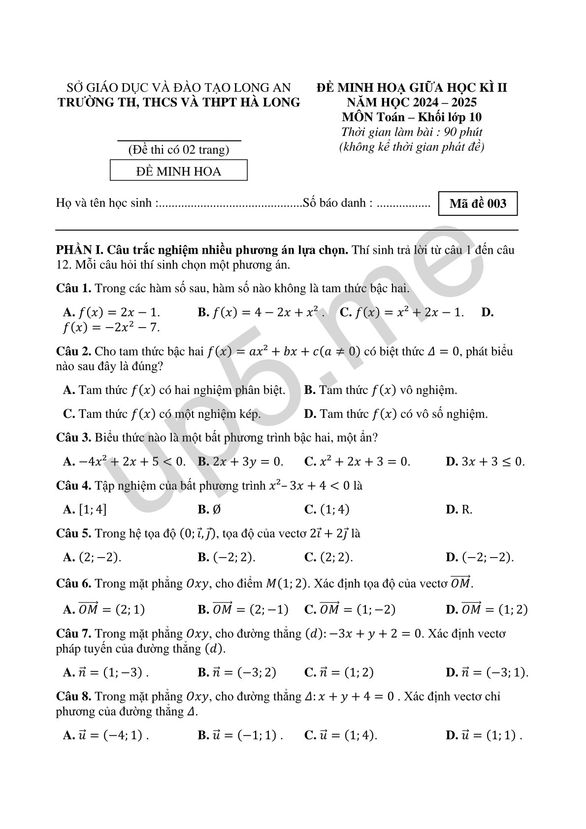 Mã đề 003