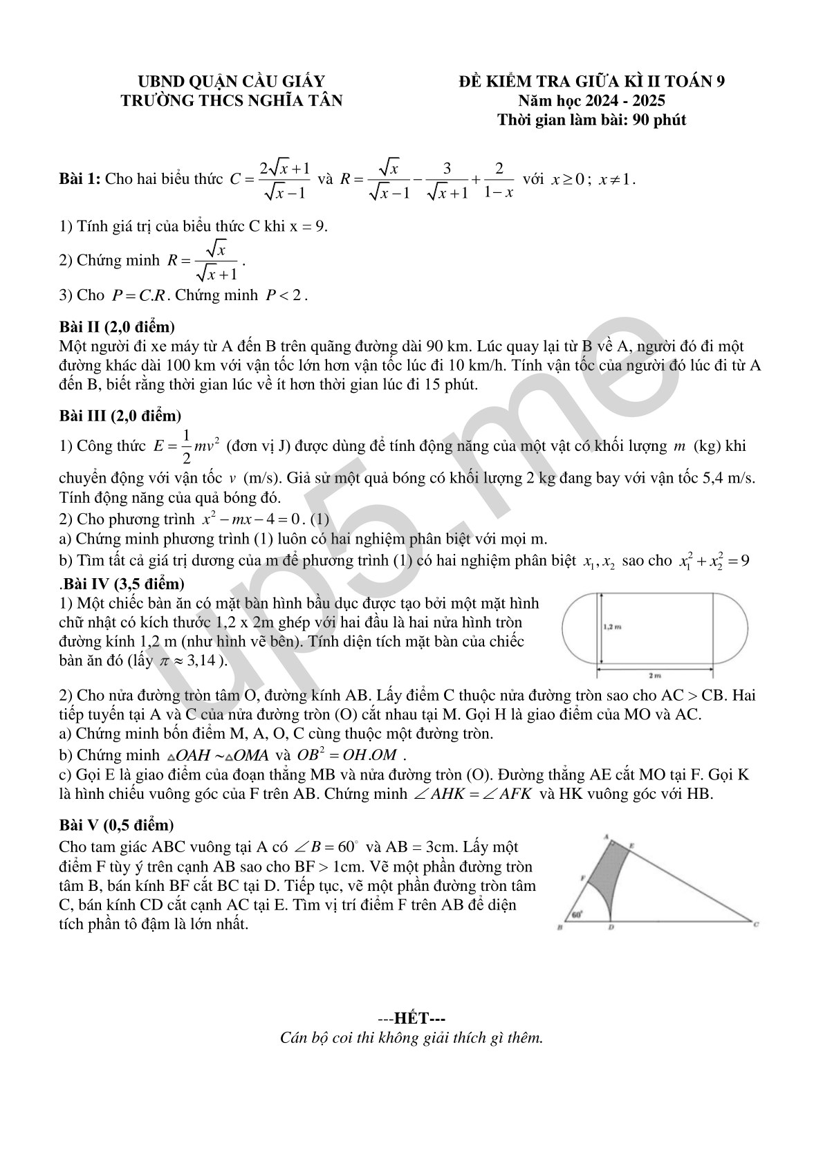 ĐỀ KIỂM TRA GIỮA KÌ II TOÁN 9 Năm học 2024 - 2025 Thời gian làm bài: 90 phút |