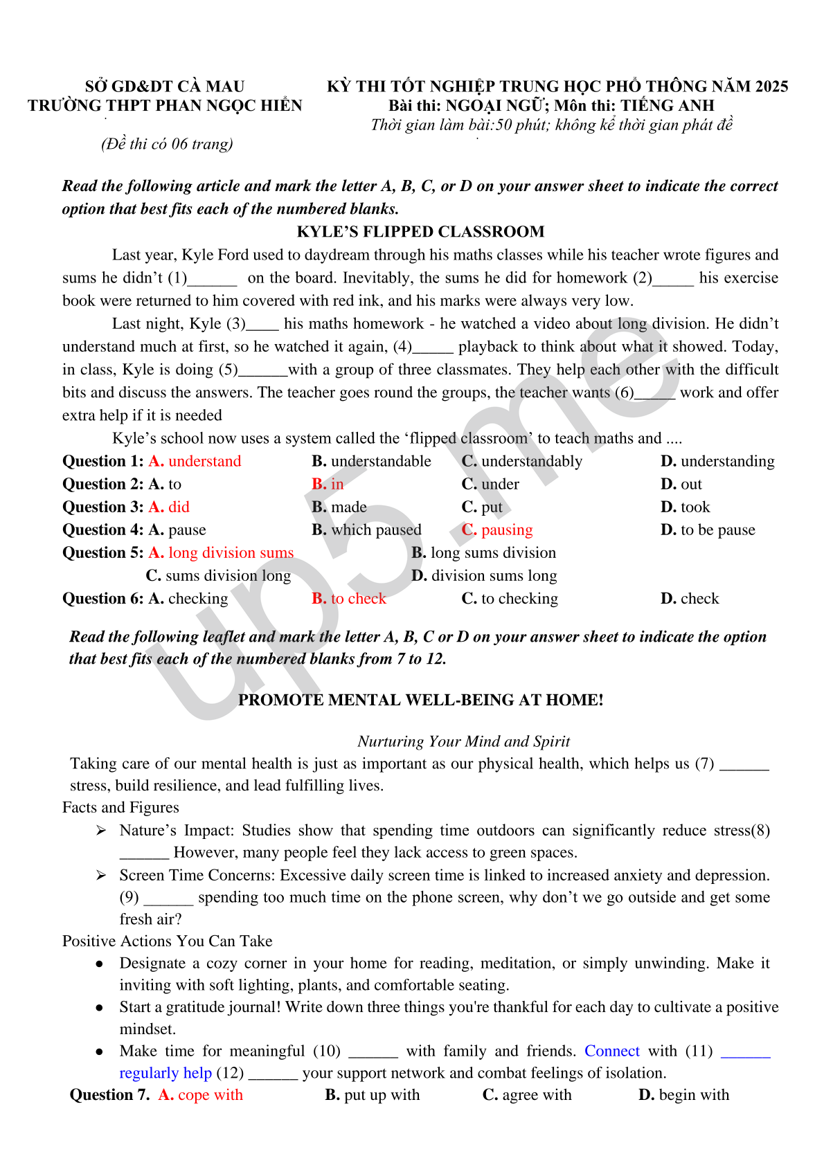 KỲ THI TỐT NGHIỆP TRUNG HỌC PHỔ THÔNG NĂM 2025Bài thi: NGOẠI NGỮ; Môn thi: TIẾNG ANHThời gian làm bài:50 phút; không kể thời gian phát đề |