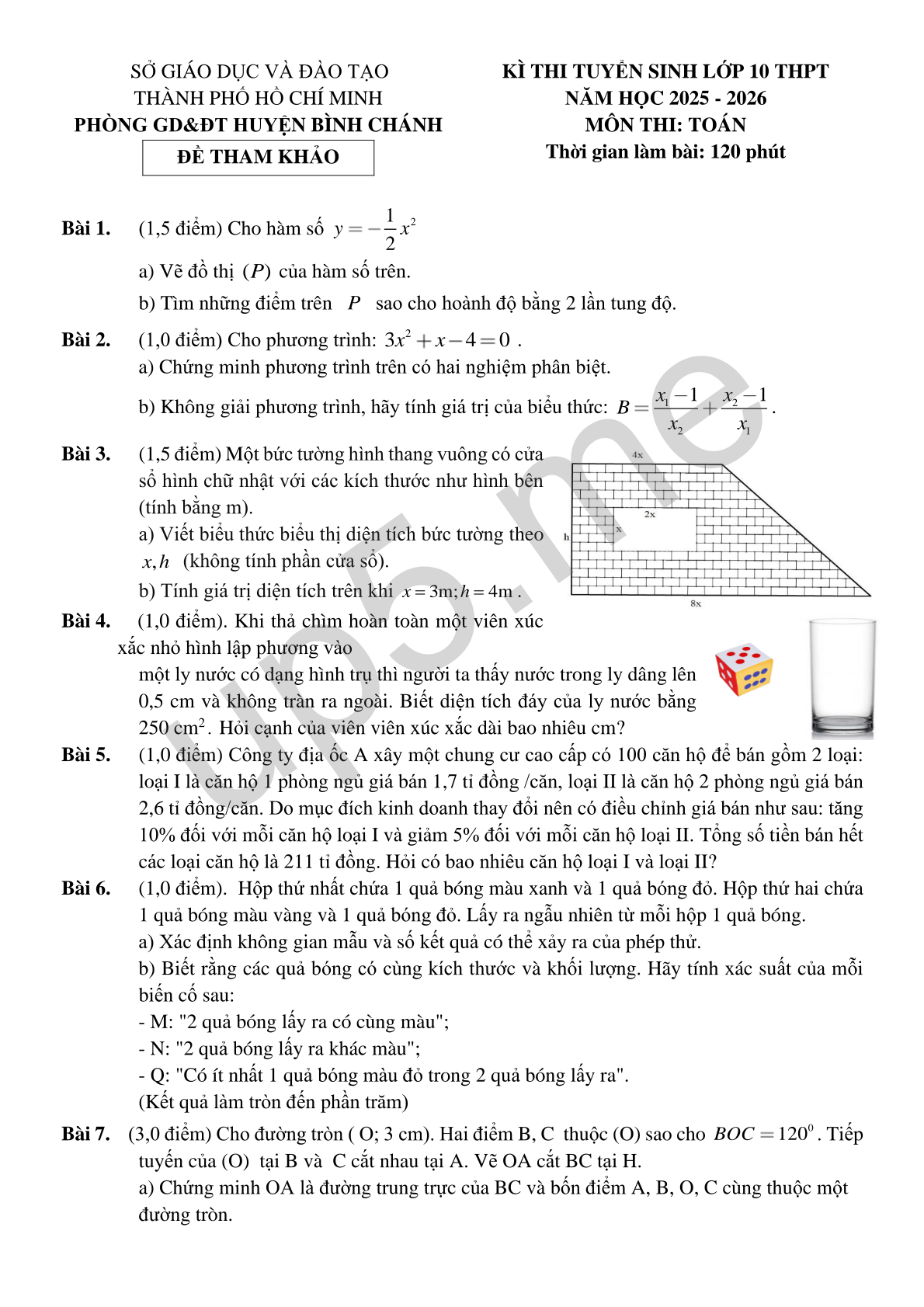 KÌ THI TUYỂN SINH LỚP 10 THPT NĂM HỌC 2025 - 2026 MÔN THI: TOÁN Thời gian làm bài: 120 phút |