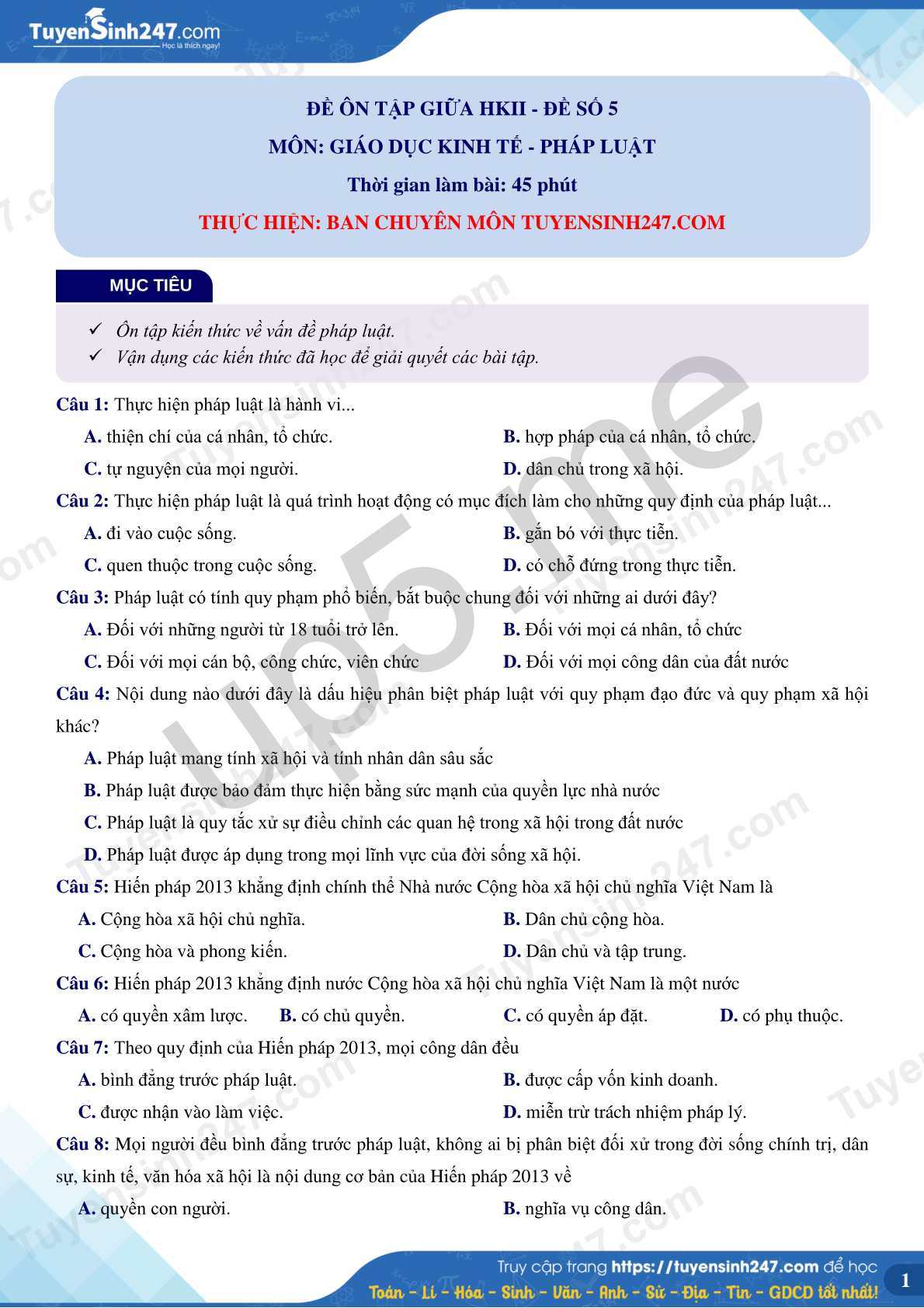 MÔN: GIÁO DỤC KINH TẾ - PHÁP LUẬT