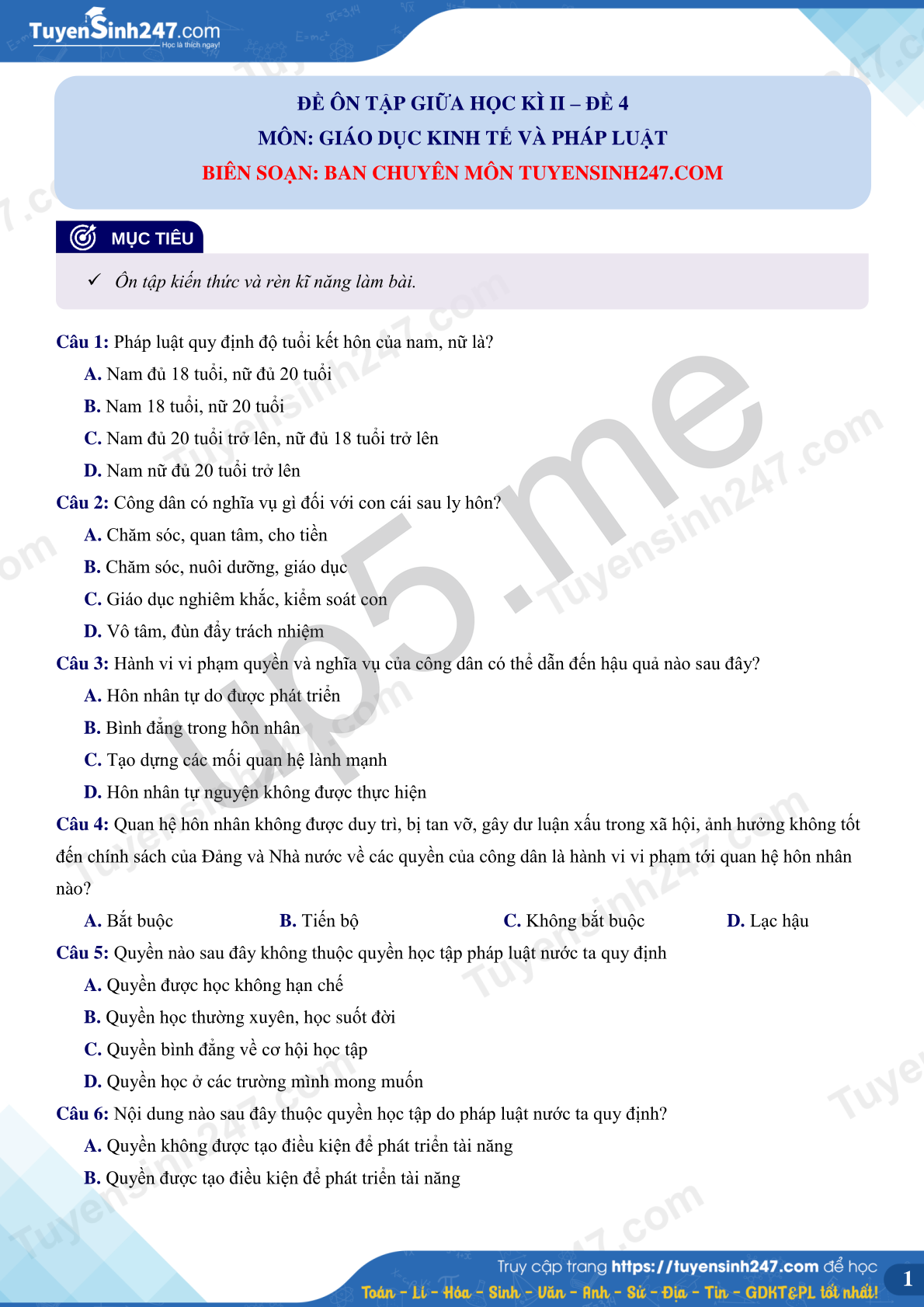 MÔN: GIÁO DỤC KINH TẾ VÀ PHÁP LUẬT