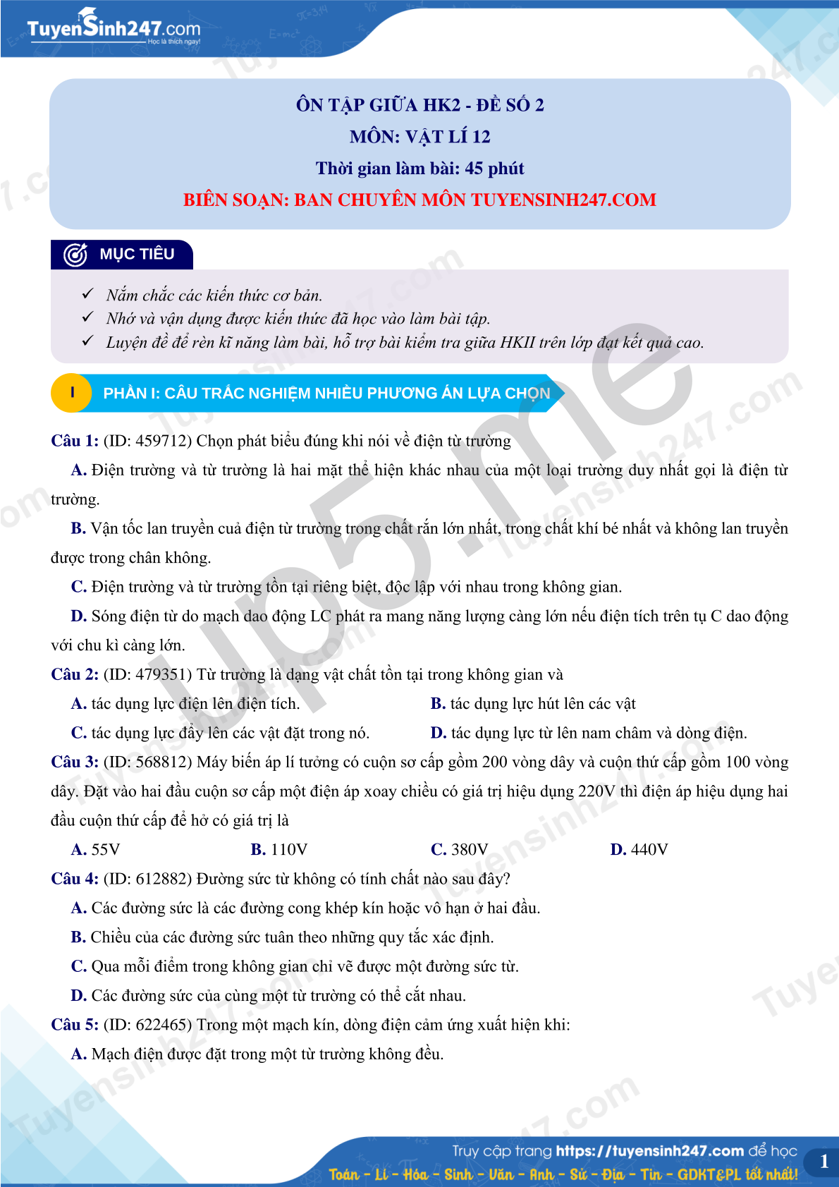 BIÊN SOẠN: BAN CHUYÊN MÔN TUYENSINH247.COM