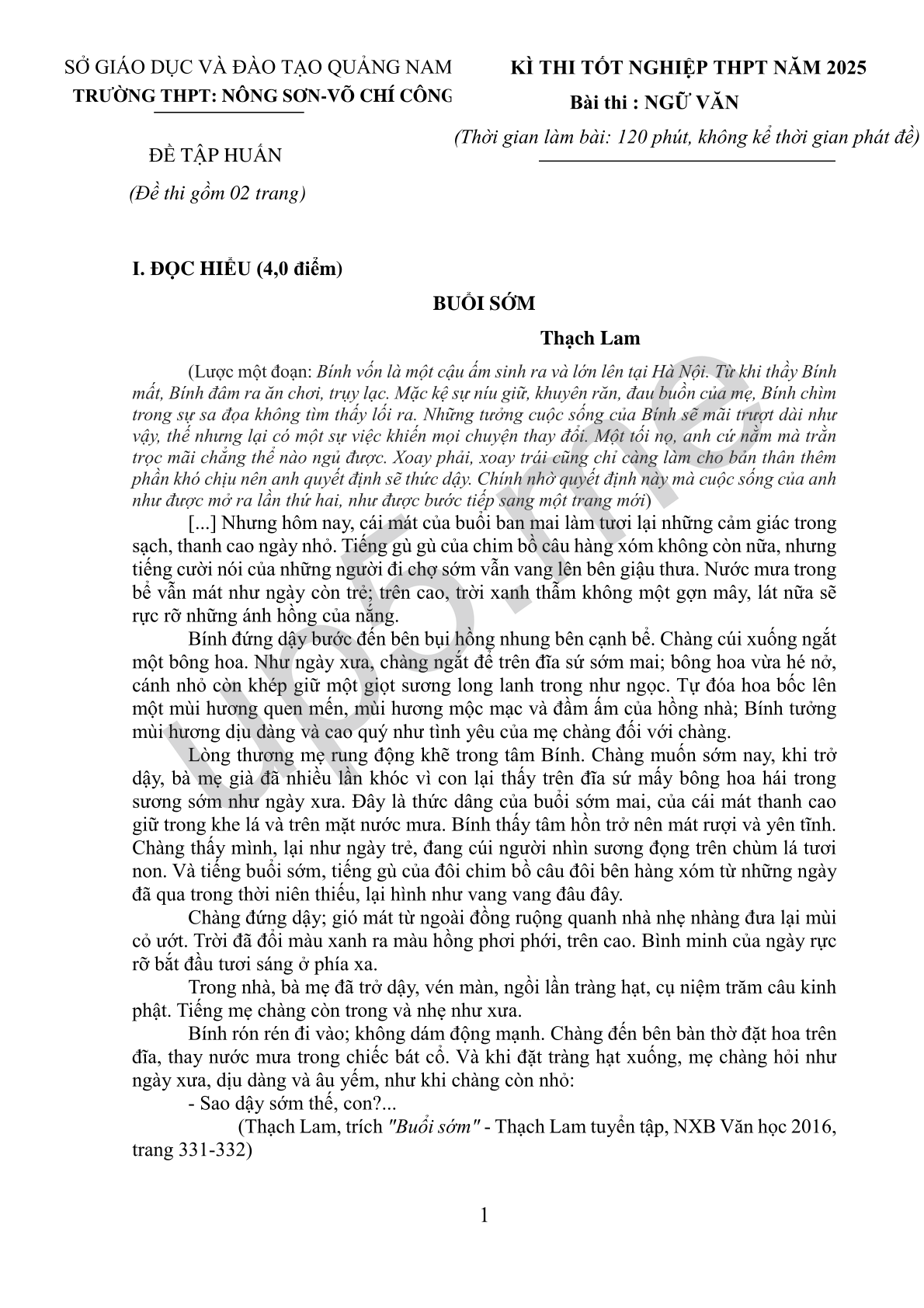KÌ THI TỐT NGHIỆP THPT NĂM 2025 Bài thi : NGỮ VĂN (Thời gian làm bài: 120 phút, không kể thời gian phát đề) |