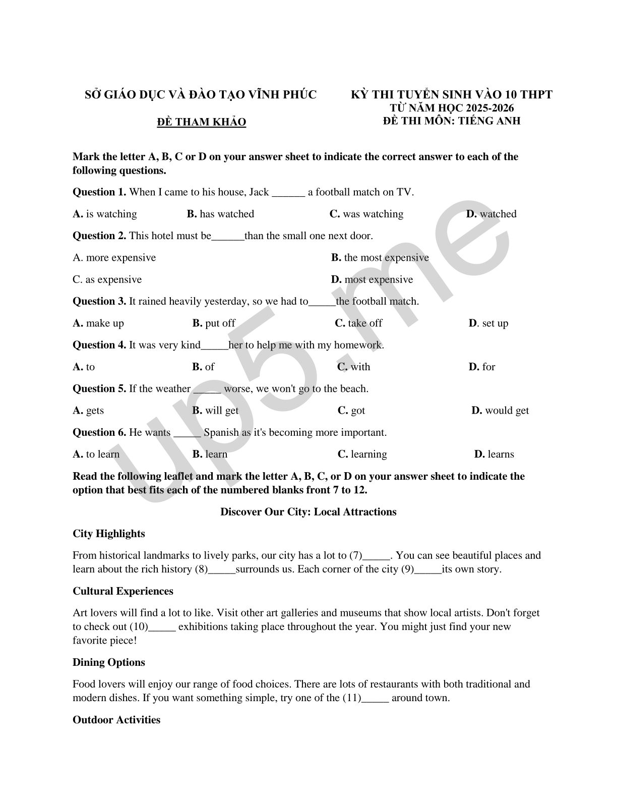 | SỞ GIÁO DỤC VÀ ĐÀO TẠO VĨNH PHÚC ĐỀ THAM KHẢO |