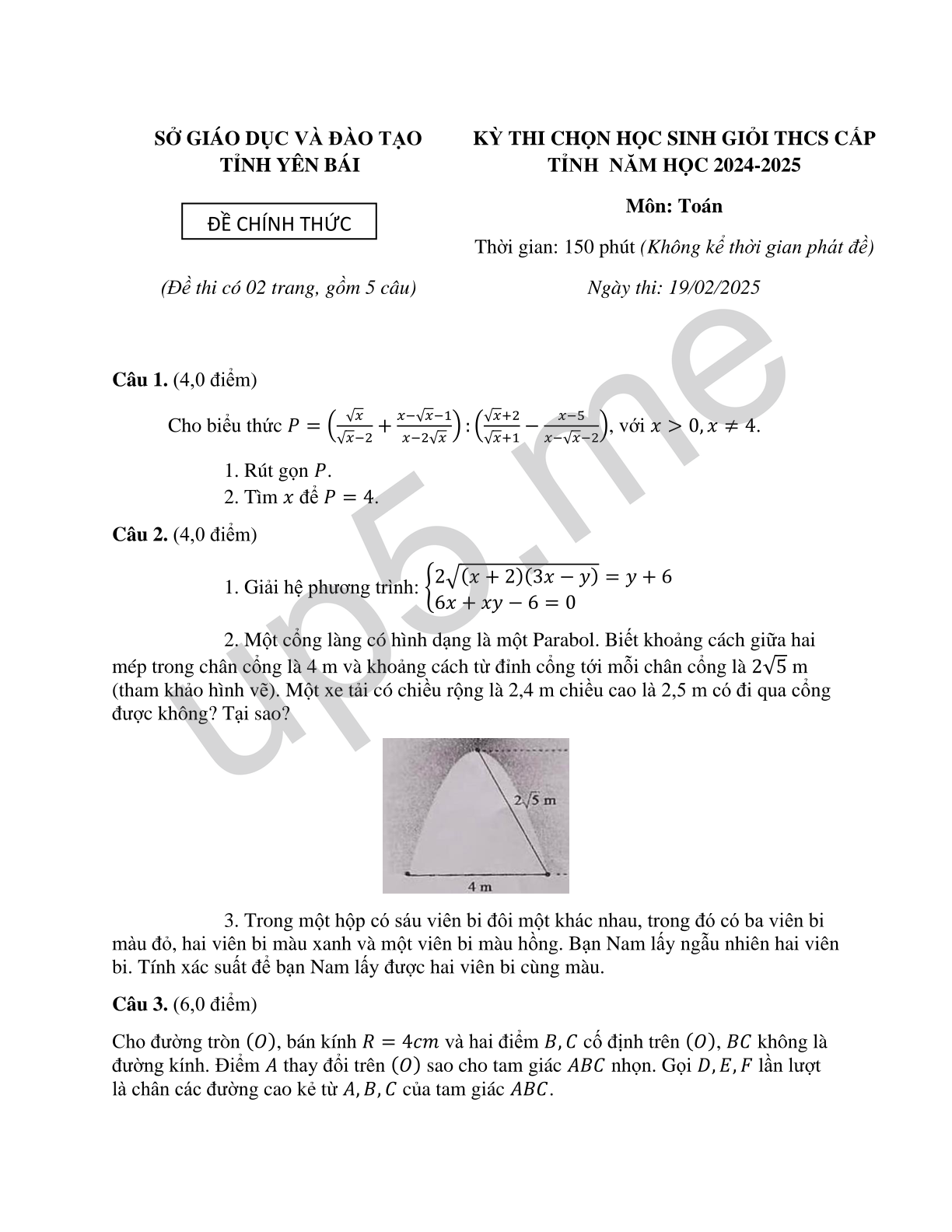 SỞ GIÁO DỤC VÀ ĐÀO TẠO ĐỀ CHÍNH THỨC (Đề thi có 02 trang, gồm 5 câu) |