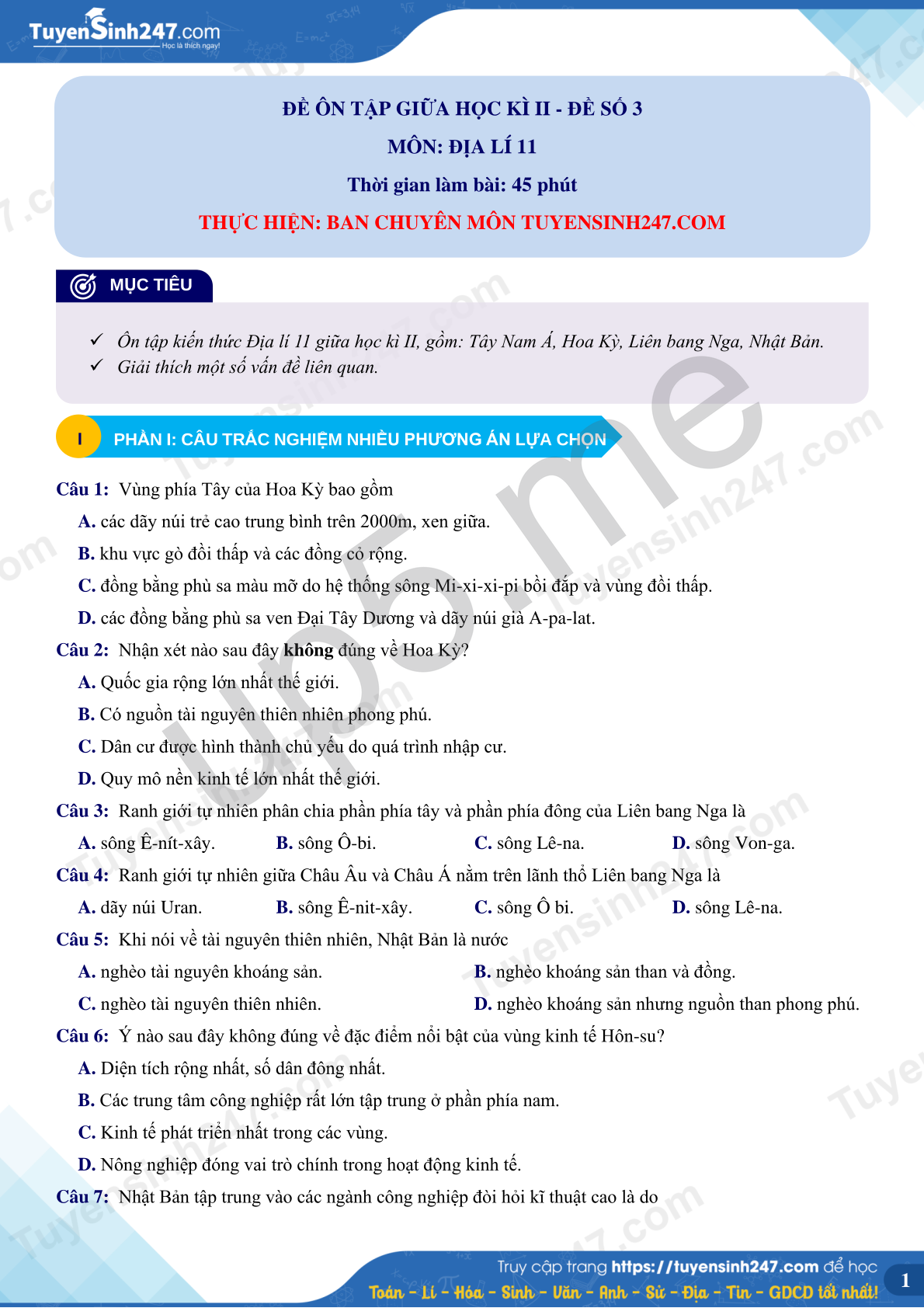 MÔN: ĐỊA LÍ 11