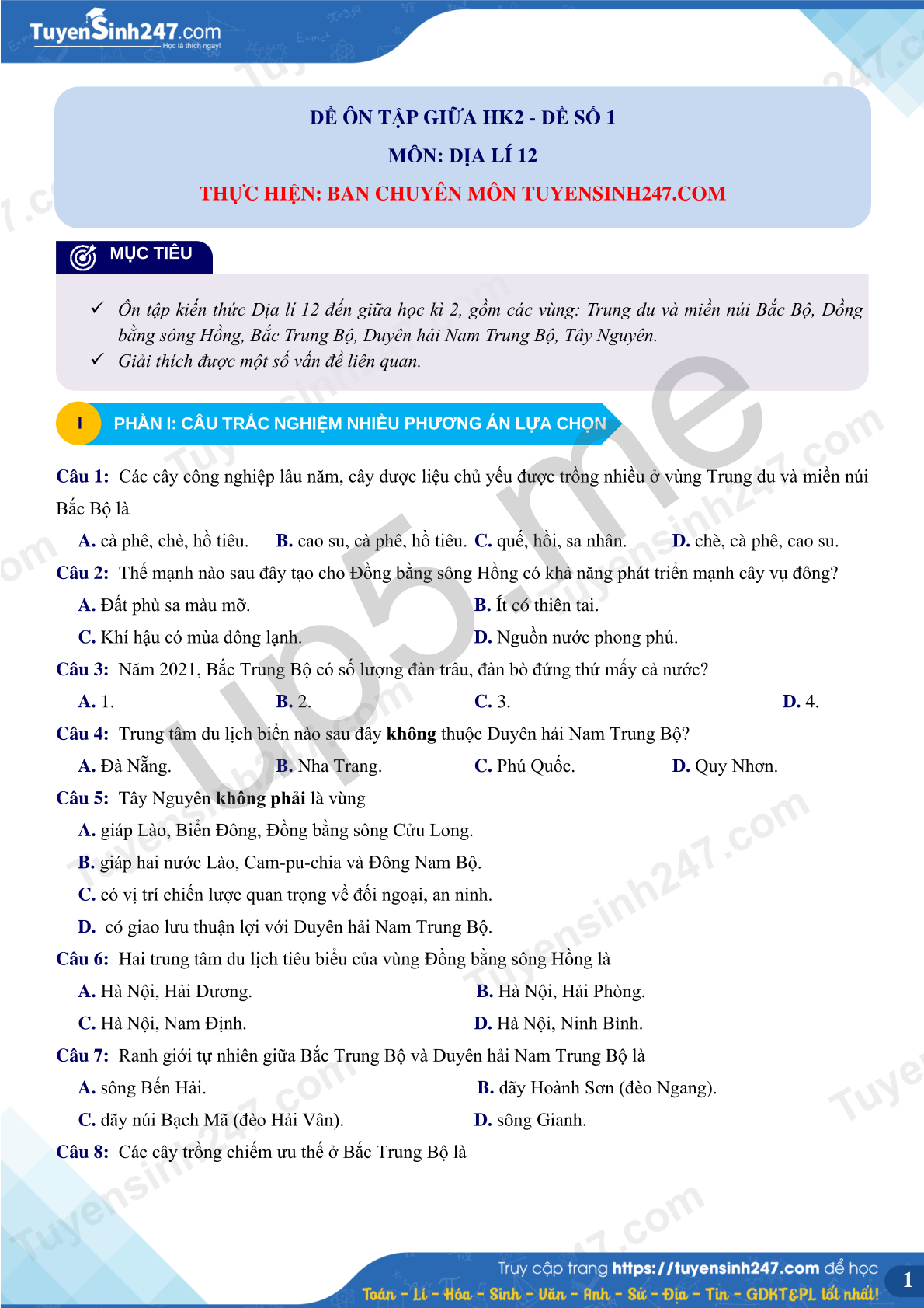 MÔN: ĐỊA LÍ 12