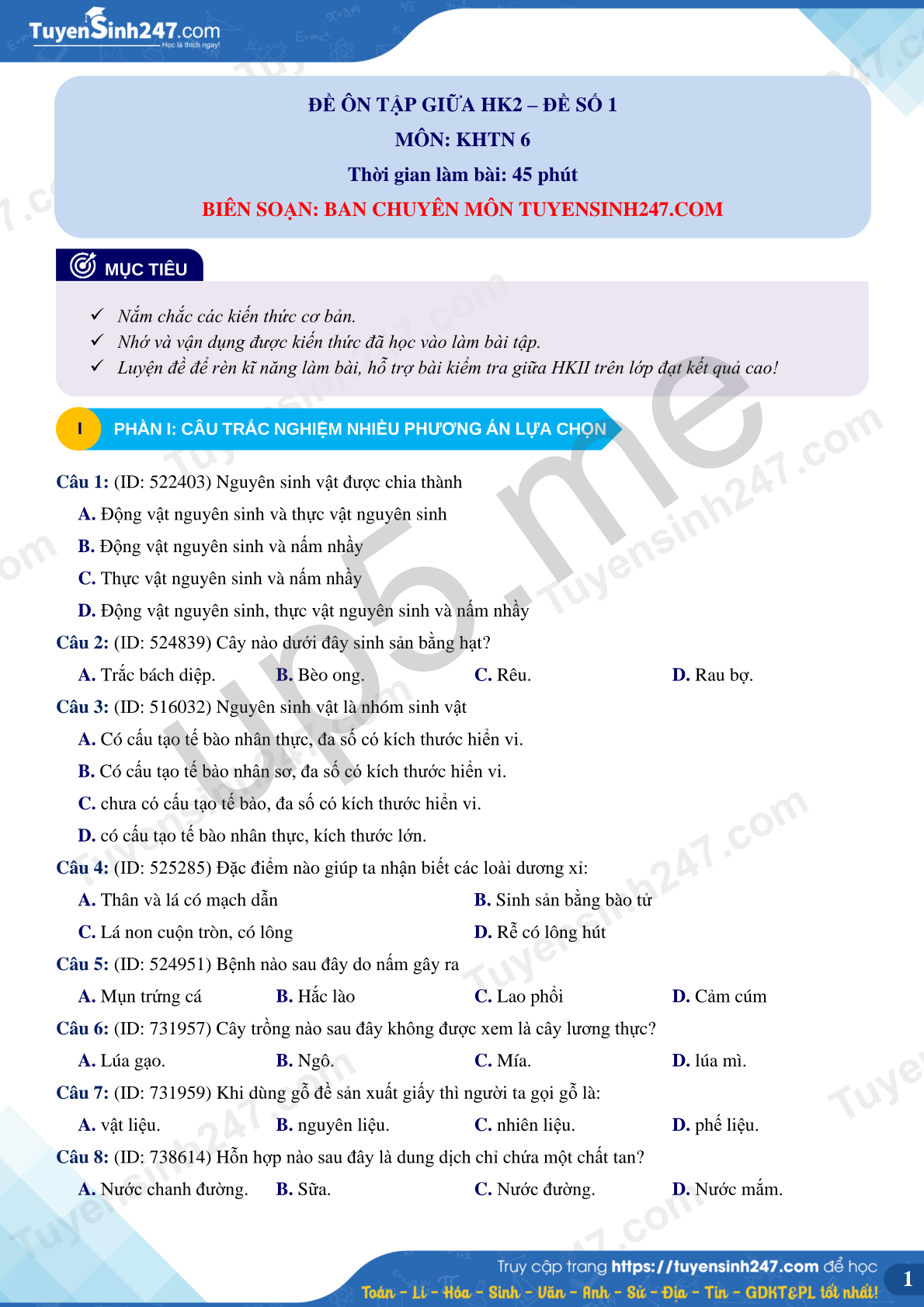 ĐỀ ÔN TẬP GIỮA HK2 – ĐỀ SỐ 1