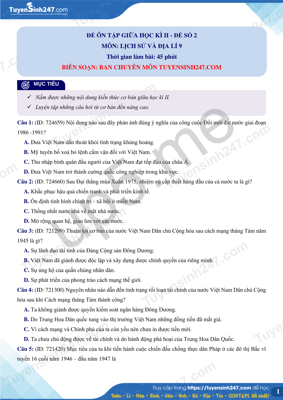 BIÊN SOẠN: BAN CHUYÊN MÔN TUYENSINH247.COM