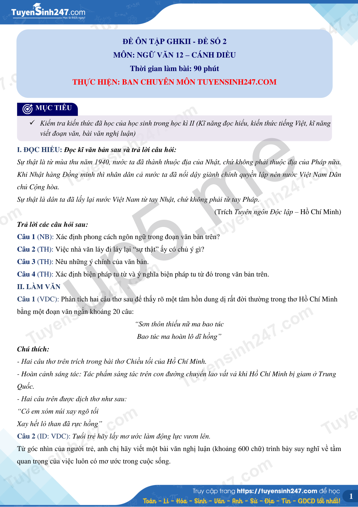THỰC HIỆN: BAN CHUYÊN MÔN TUYENSINH247.COM