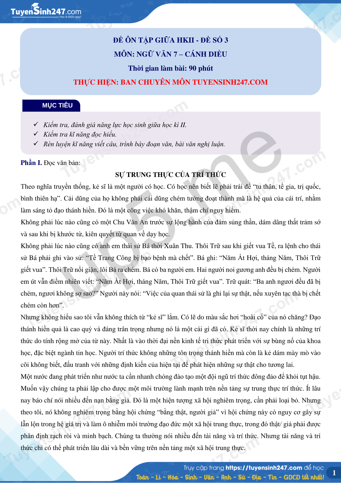 ĐỀ ÔN TẬP GIỮA HKII - ĐỀ SỐ 3
