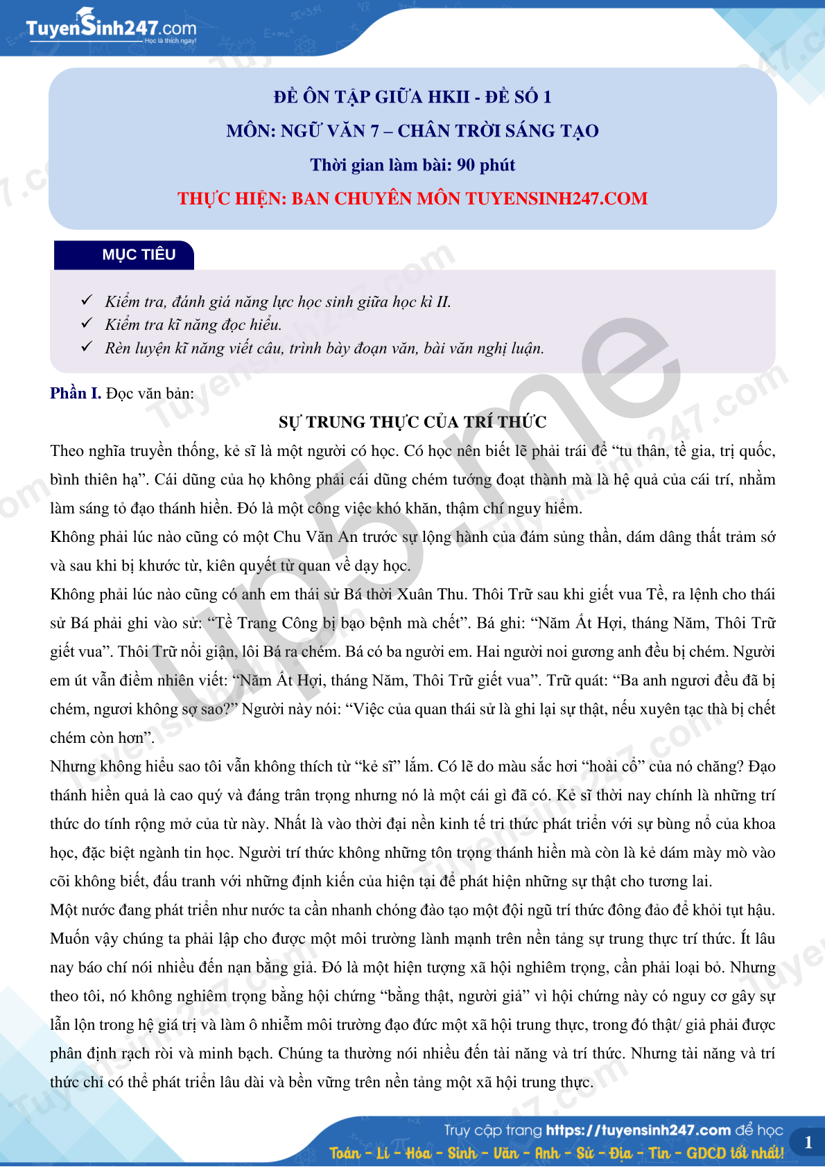 MÔN: NGỮ VĂN 7 – CHÂN TRỜI SÁNG TẠO
