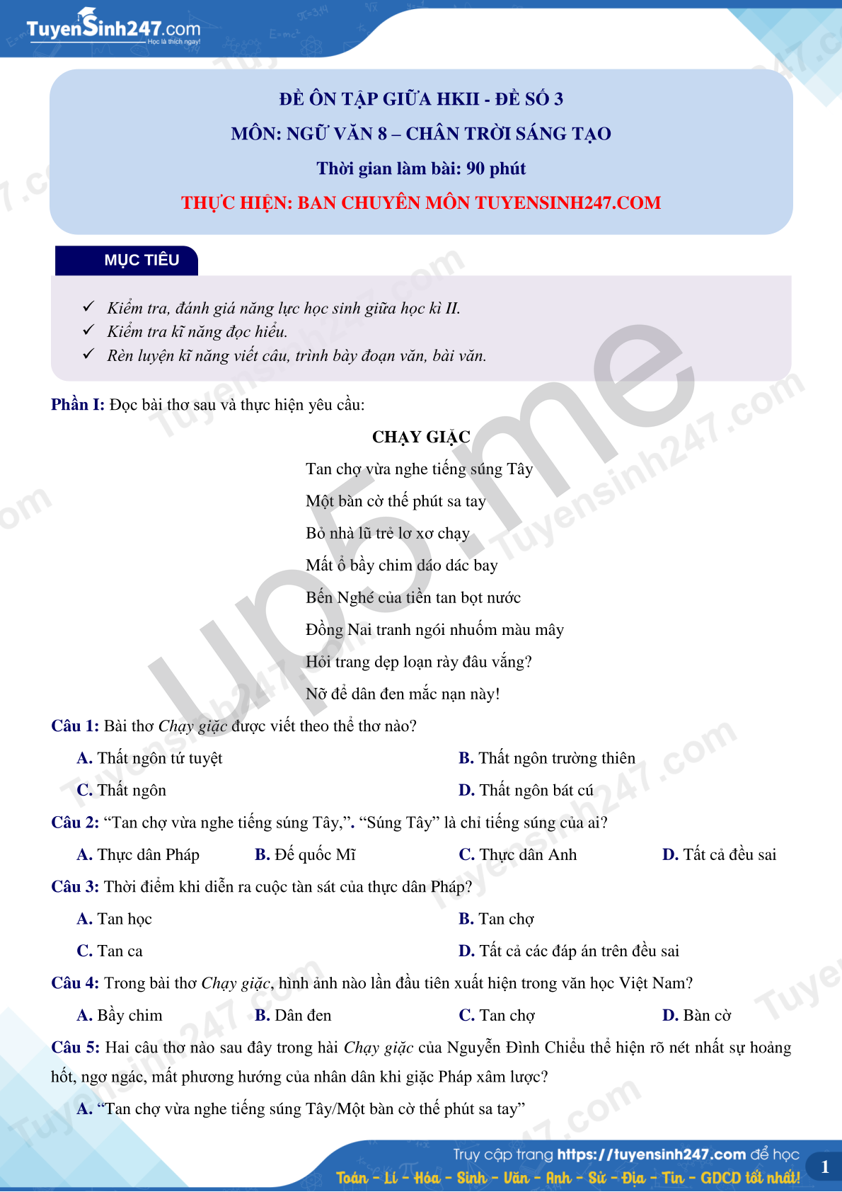 Câu 1: Bài thơ Chạy giặc được viết theo thể thơ nào?