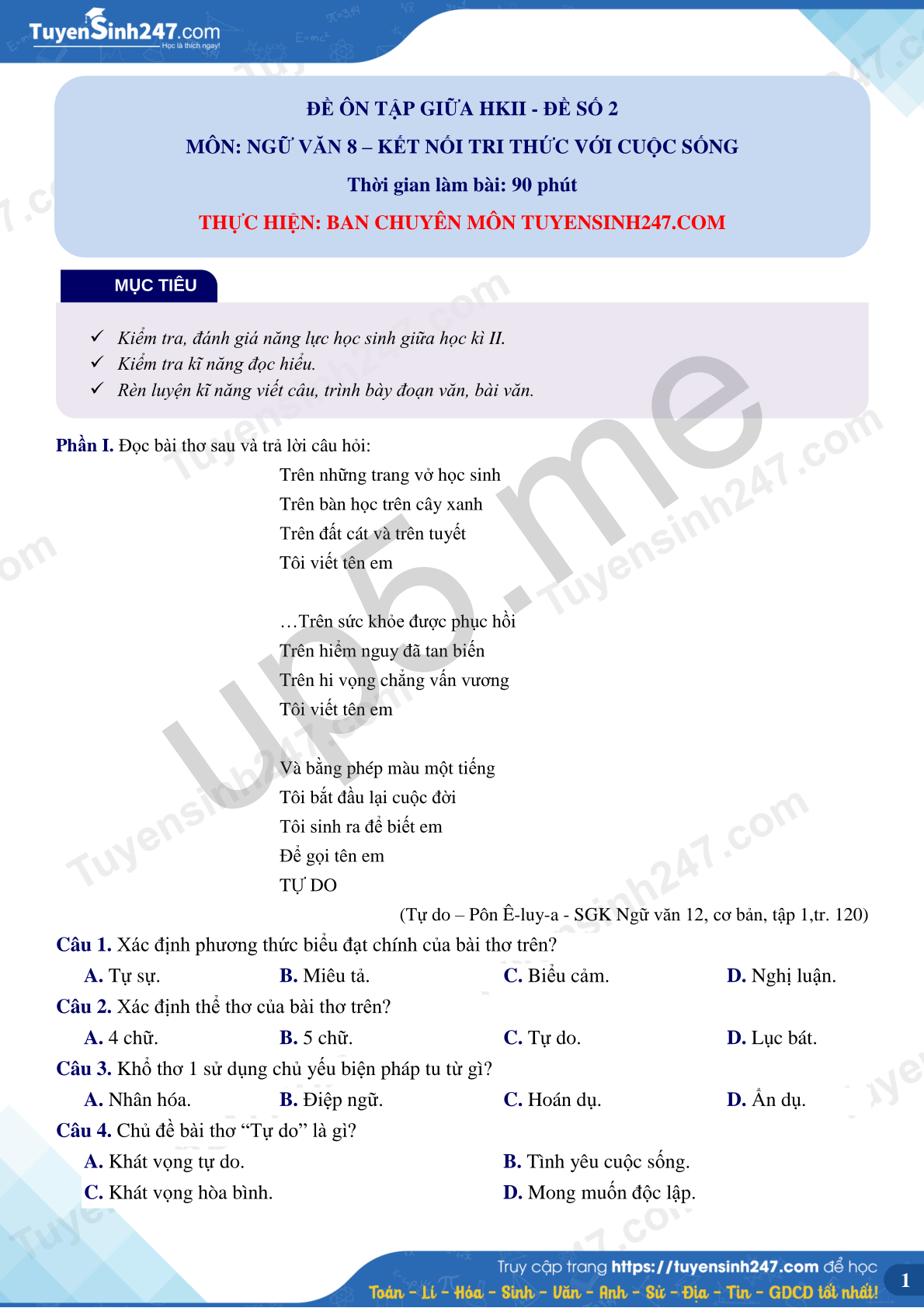Phần I. Đọc bài thơ sau và trả lời câu hỏi: