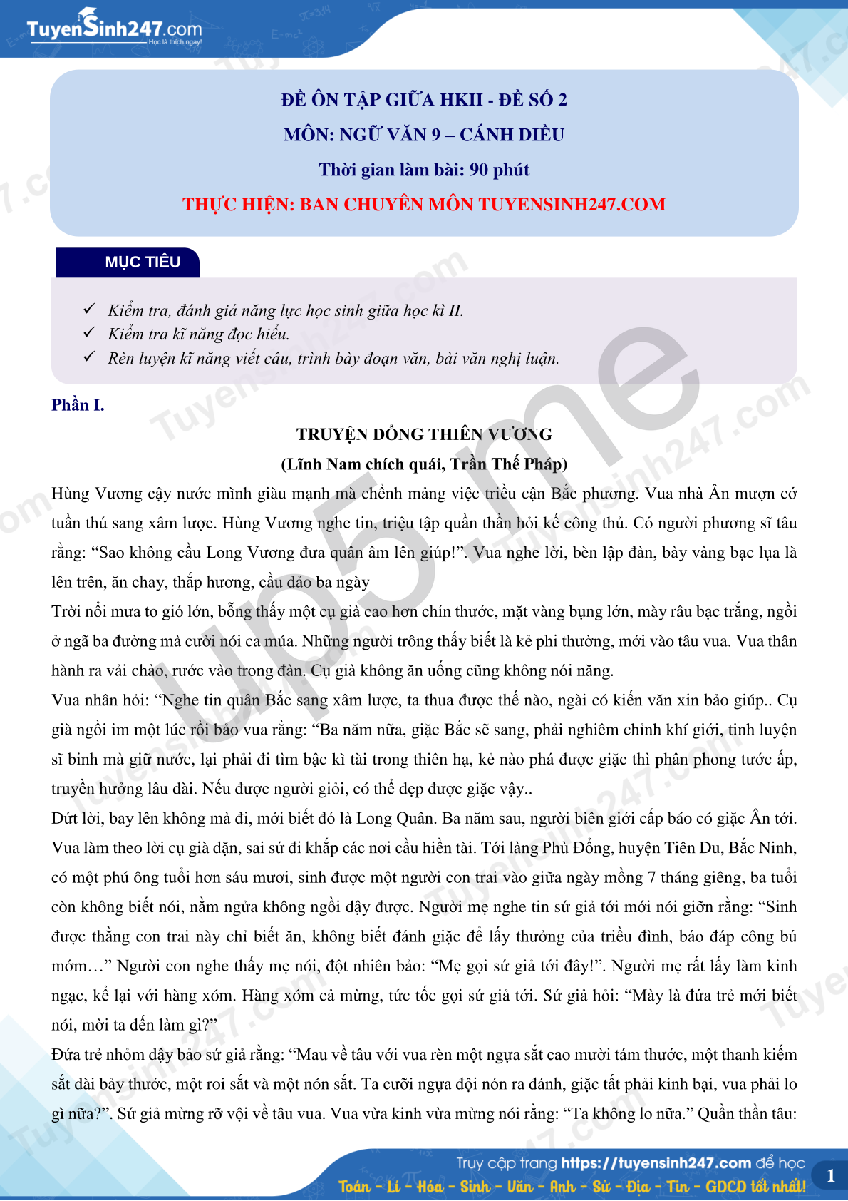 MÔN: NGỮ VĂN 9 – CÁNH DIỀU