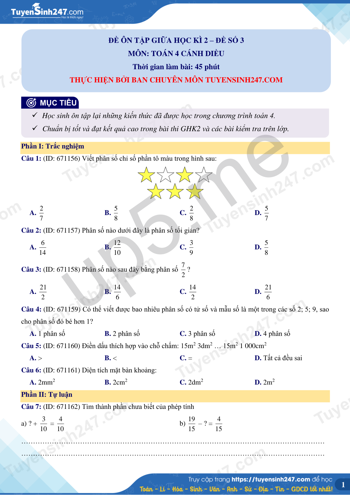 ĐỀ ÔN TẬP GIỮA HỌC KÌ 2 – ĐỀ SỐ 3