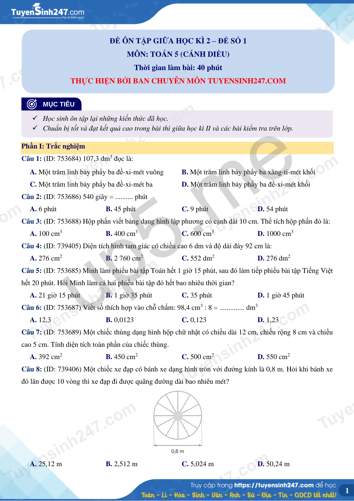 ĐỀ ÔN TẬP GIỮA HỌC KÌ 2 – ĐỀ SỐ 1