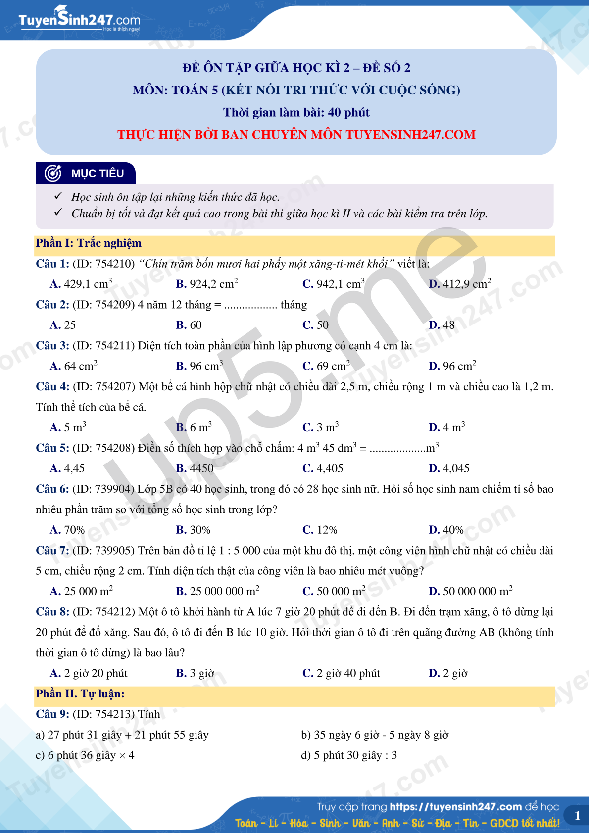 ĐỀ ÔN TẬP GIỮA HỌC KÌ 2 – ĐỀ SỐ 2