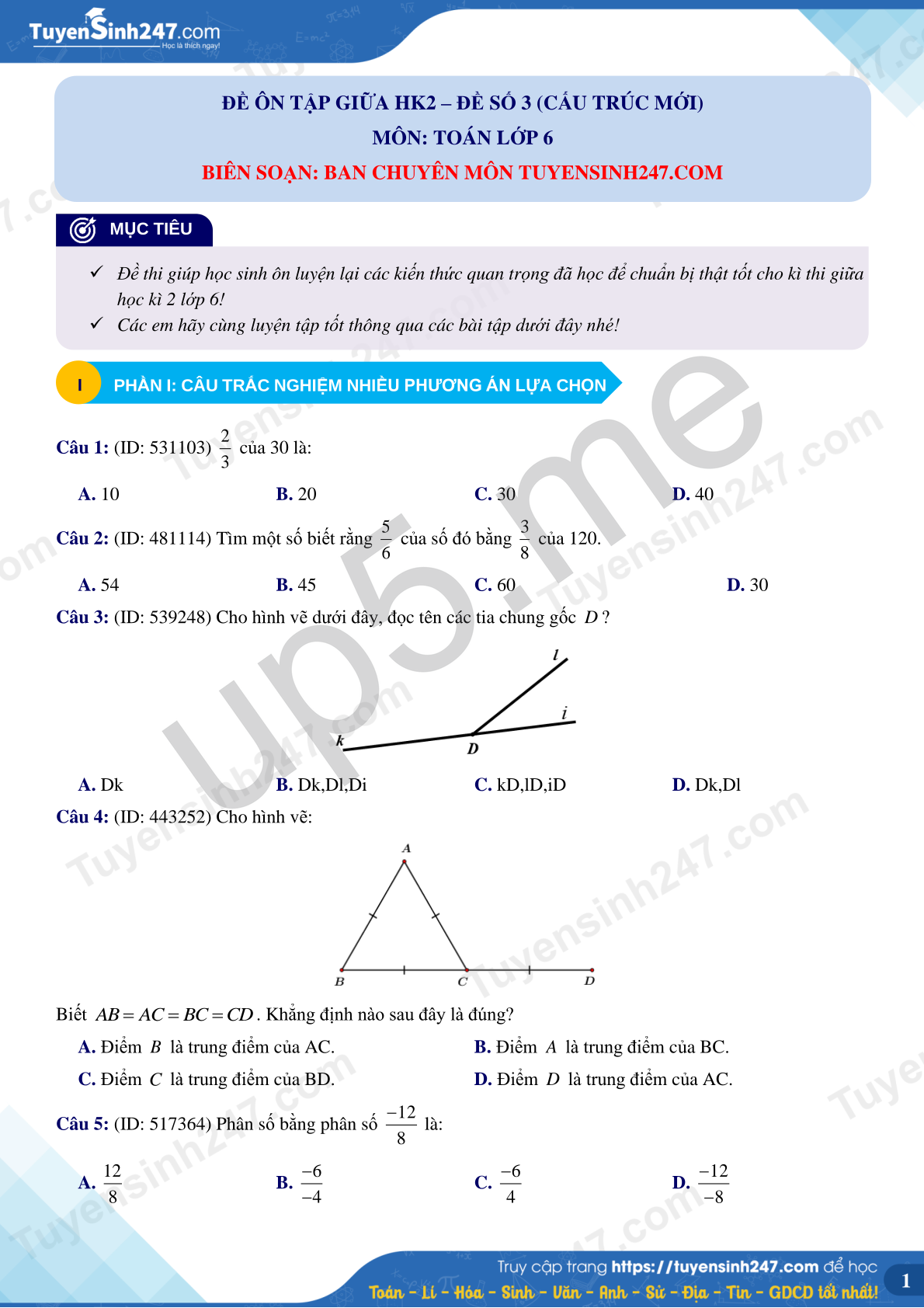MÔN: TOÁN LỚP 6
