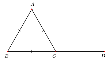 Biết $AB = AC = BC = CD$. Khẳng định nào sau đây là đúng?