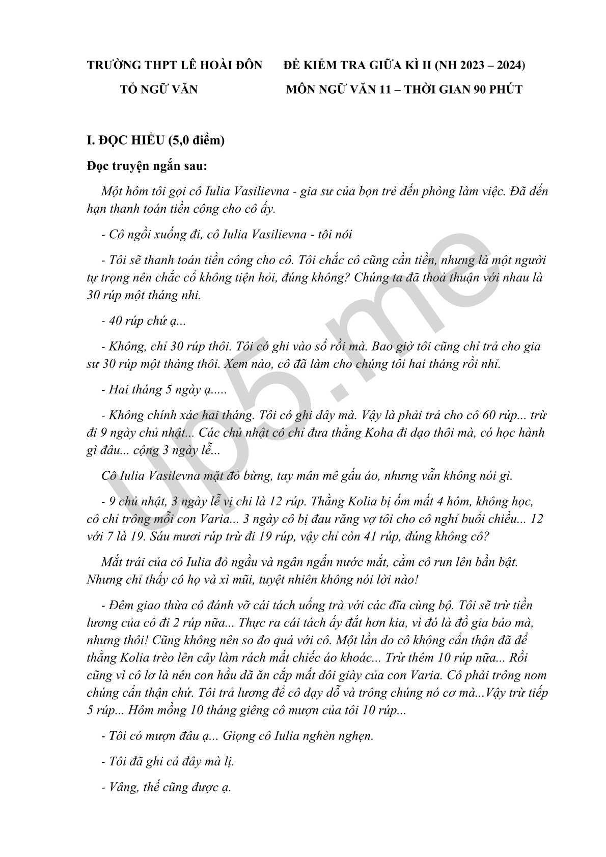 TỔ NGỮ VĂN MÔN NGỮ VĂN 11 – THỜI GIAN 90 PHÚT