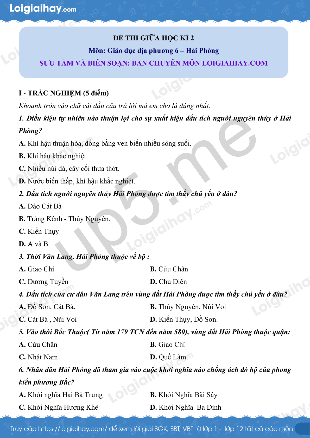 Môn: Giáo dục địa phương 6 – Hải Phòng