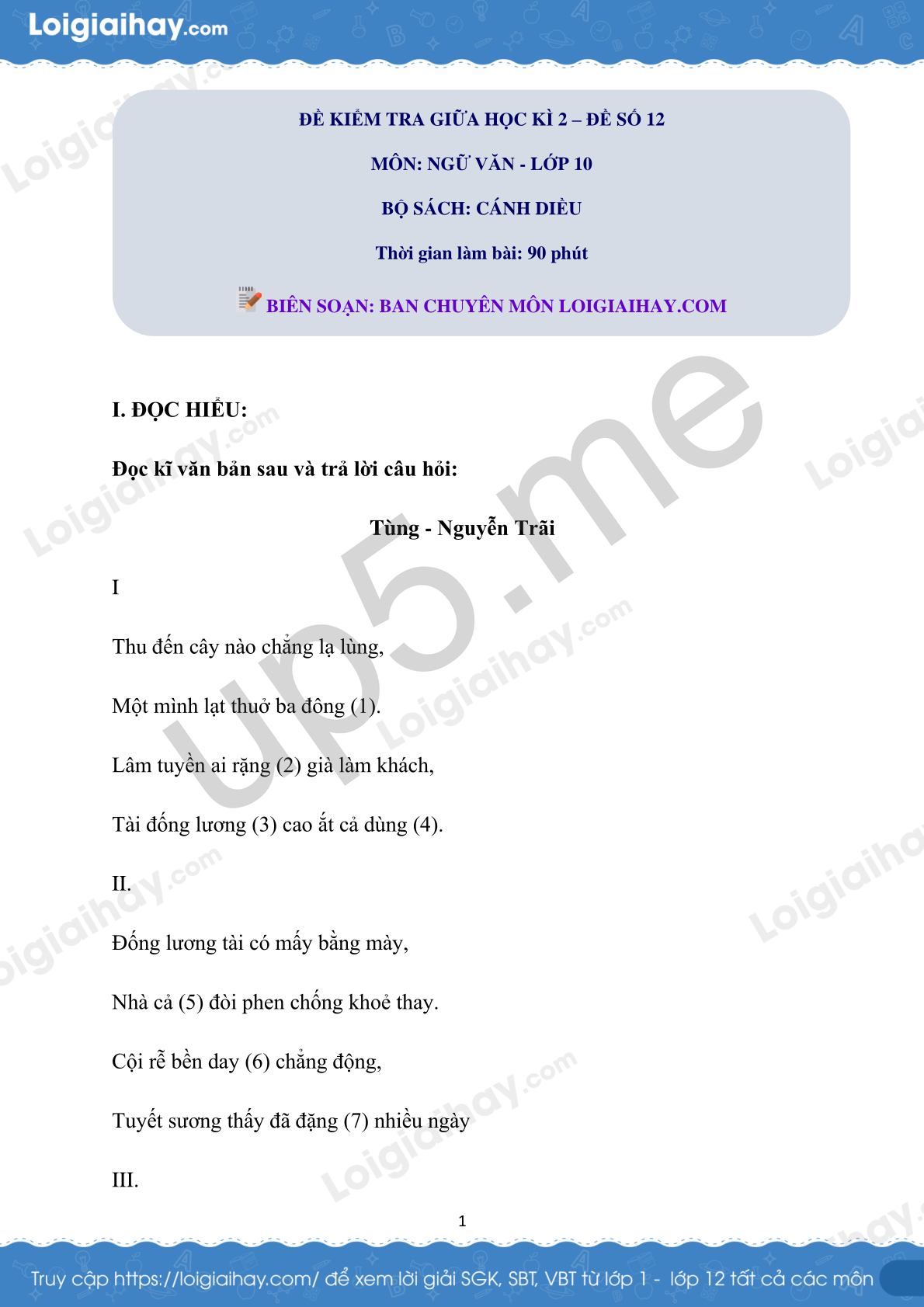 ĐỀ KIỂM TRA GIỮA HỌC KÌ 2 – ĐỀ SỐ 12