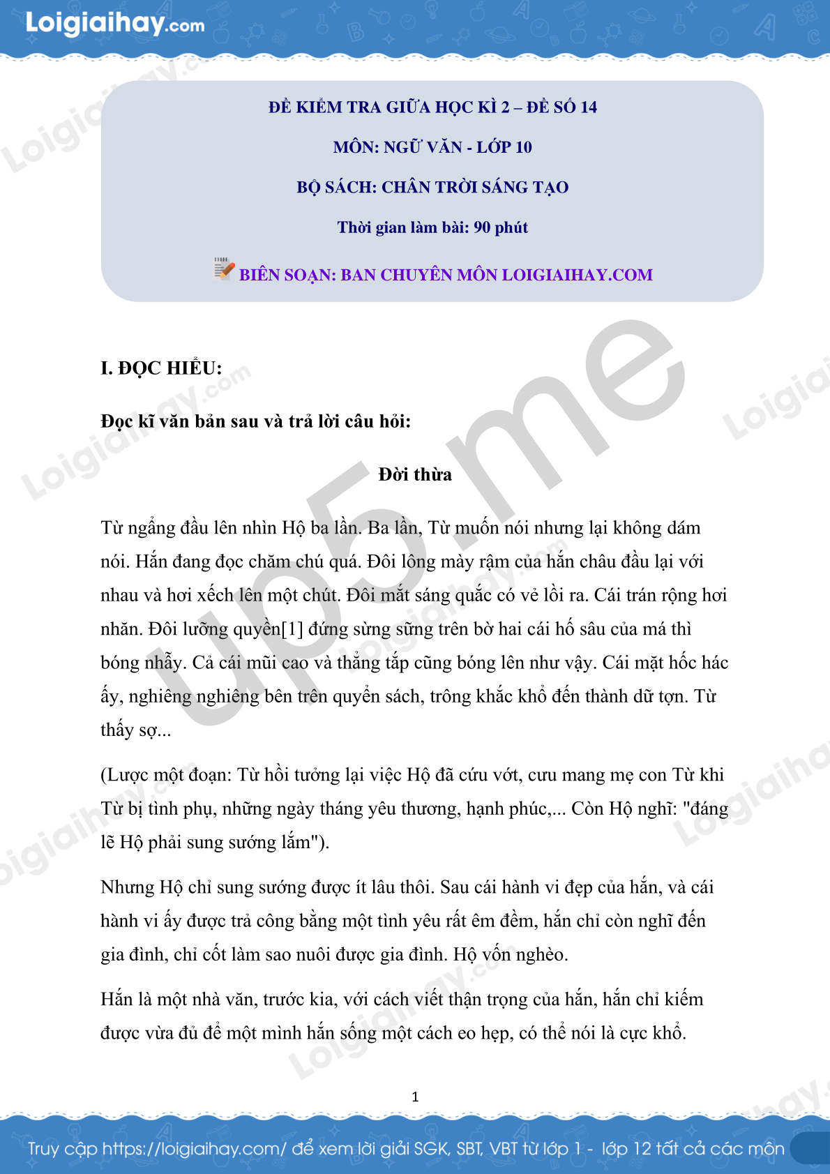 I. ĐỌC HIỂU: