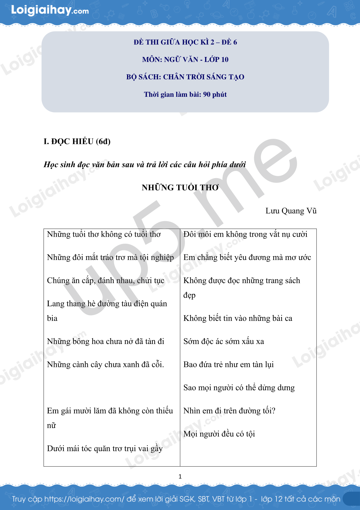 MÔN: NGỮ VĂN - LỚP 10