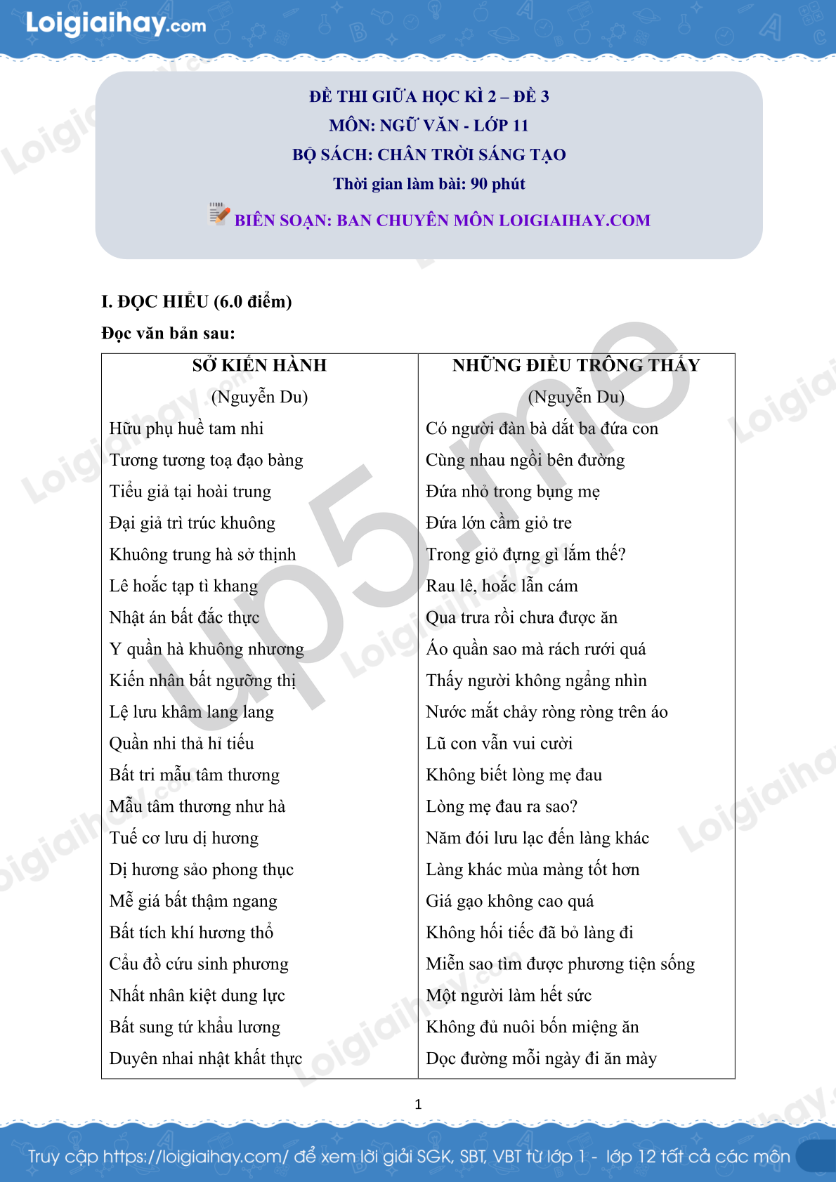 MÔN: NGỮ VĂN - LỚP 11