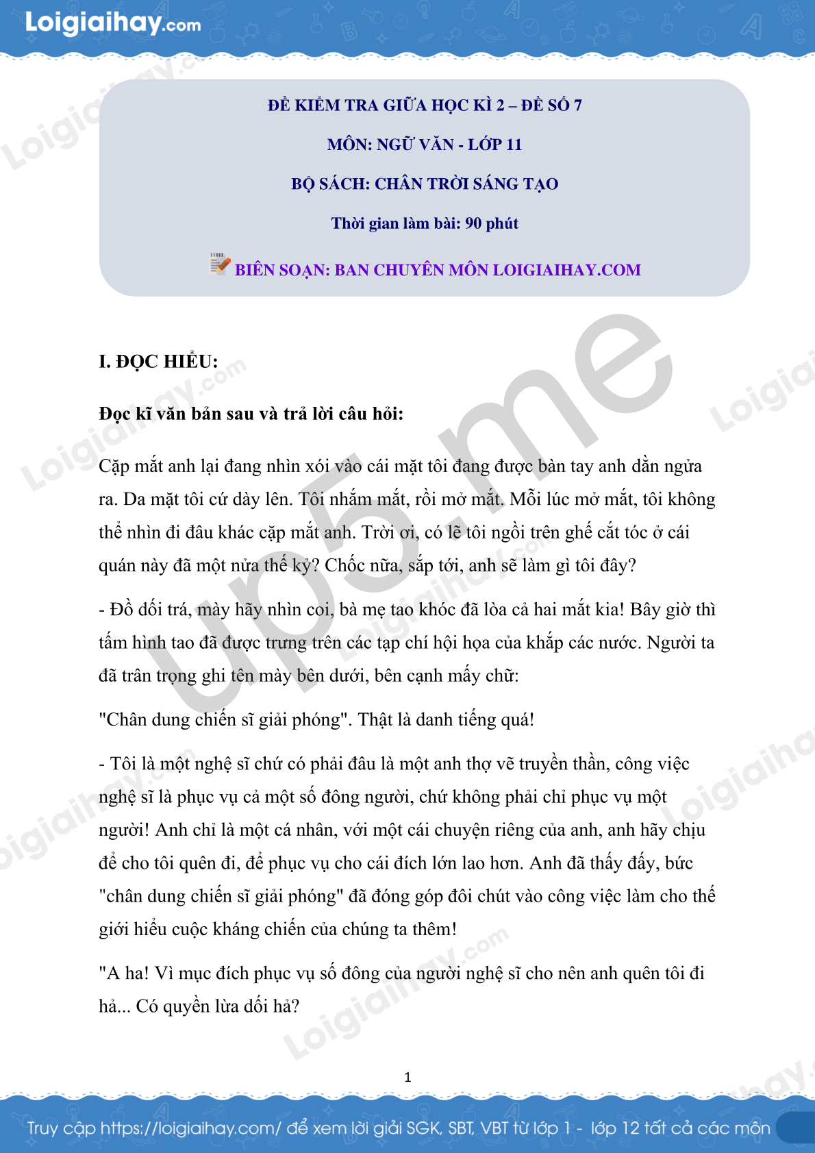 I. ĐỌC HIỂU: