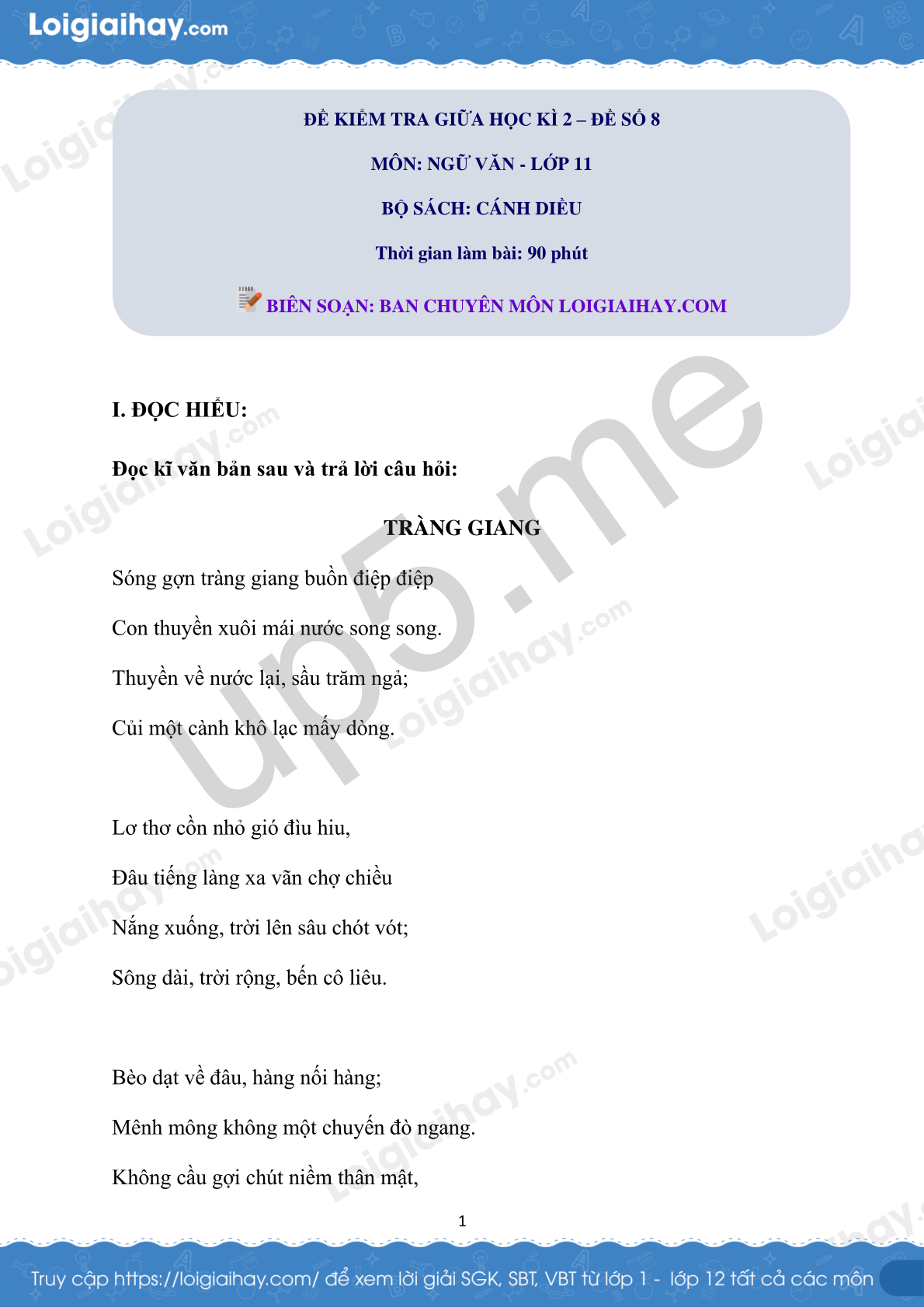 I. ĐỌC HIỂU: