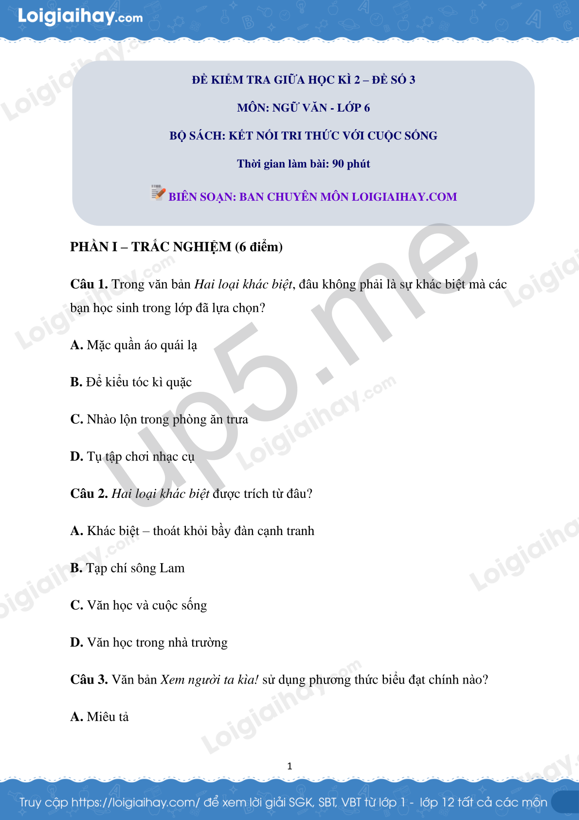 Câu 1. Trong văn bản Hai loại khác biệt, đâu không phải là sự khác biệt mà các bạn học sinh trong lớp đã lựa chọn?