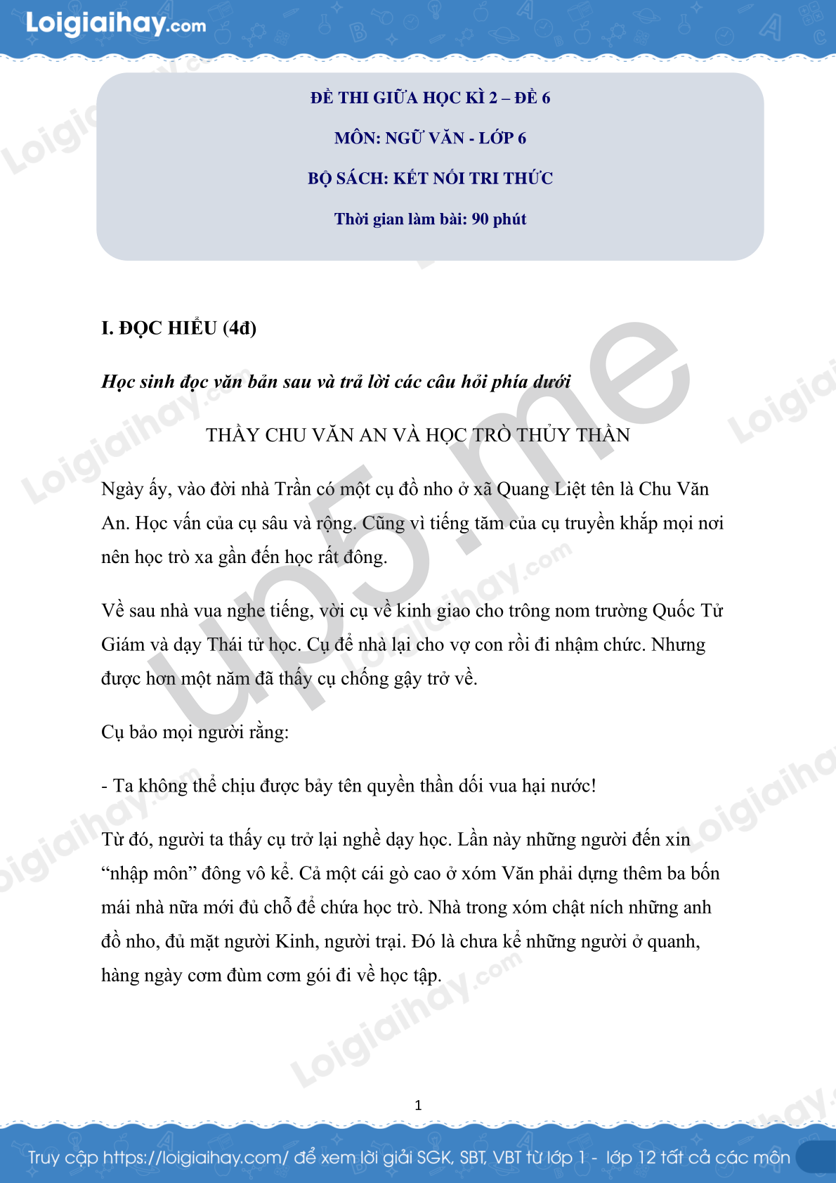 MÔN: NGỮ VĂN - LỚP 6
