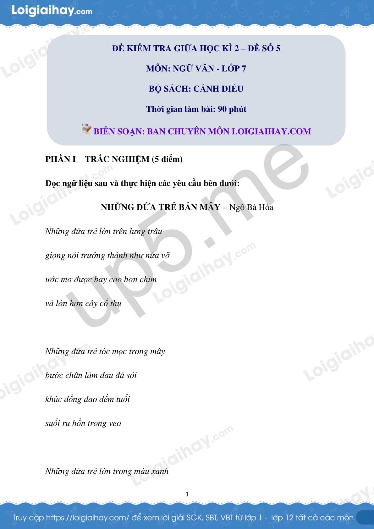 ĐỀ KIỂM TRA GIỮA HỌC KÌ 2 – ĐỀ SỐ 5