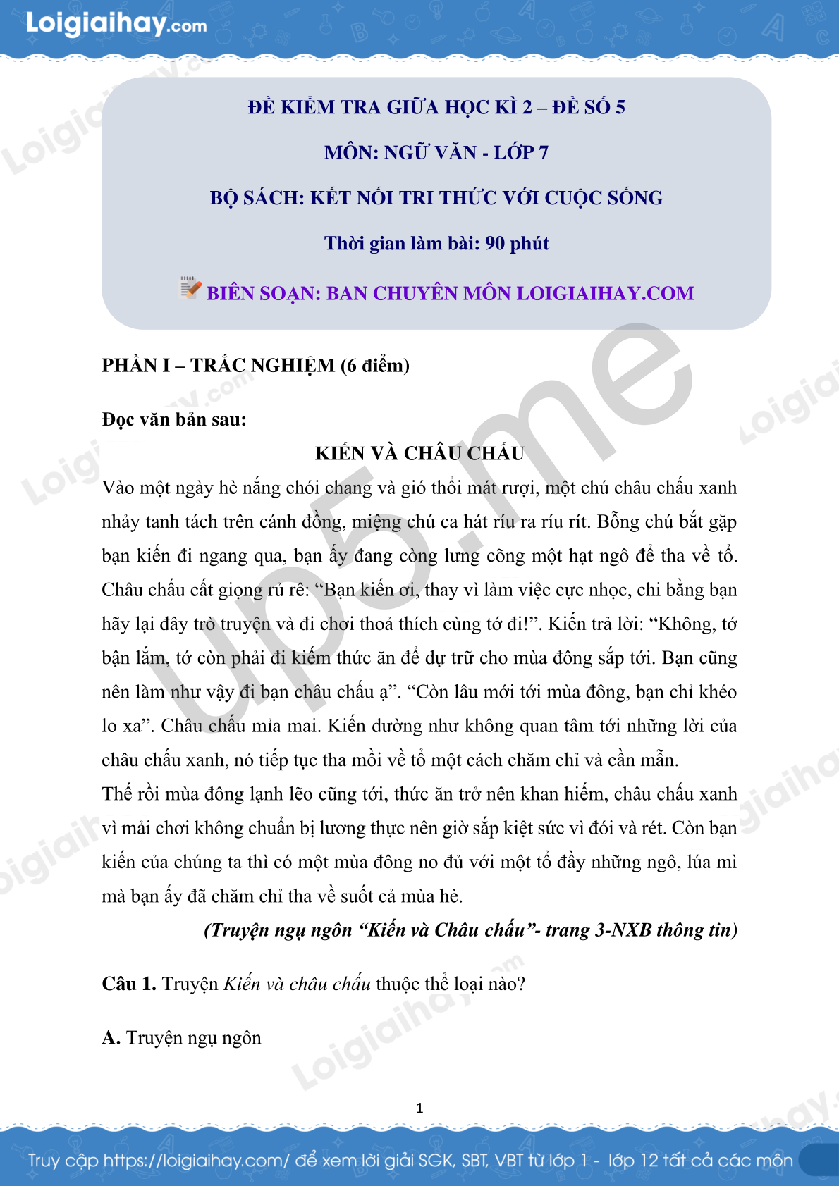 ĐỀ KIỂM TRA GIỮA HỌC KÌ 2 – ĐỀ SỐ 5