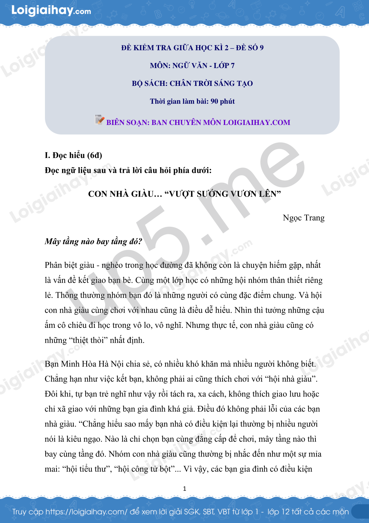 I. Đọc hiểu (6đ)
