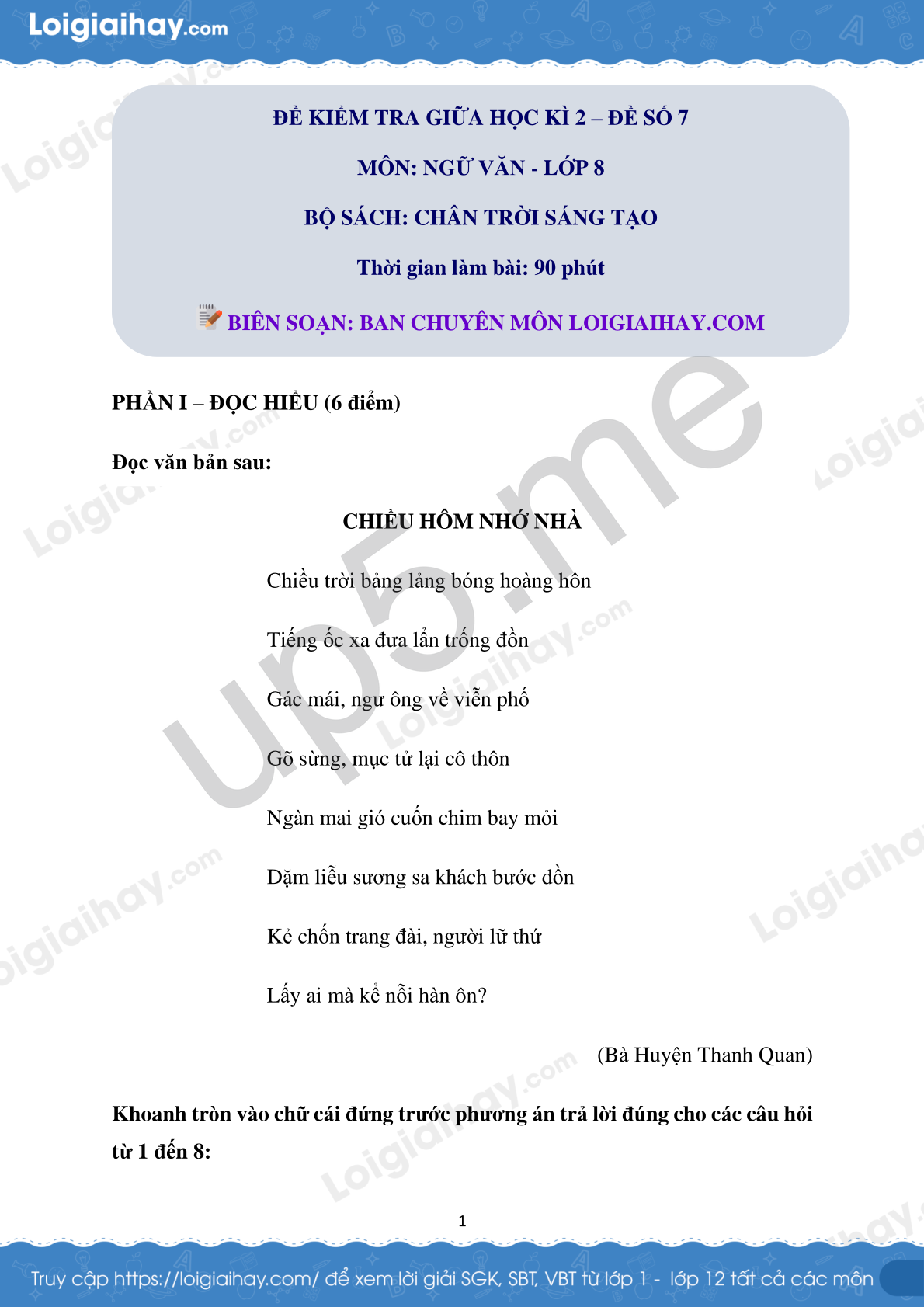 ĐỀ KIỂM TRA GIỮA HỌC KÌ 2 – ĐỀ SỐ 7