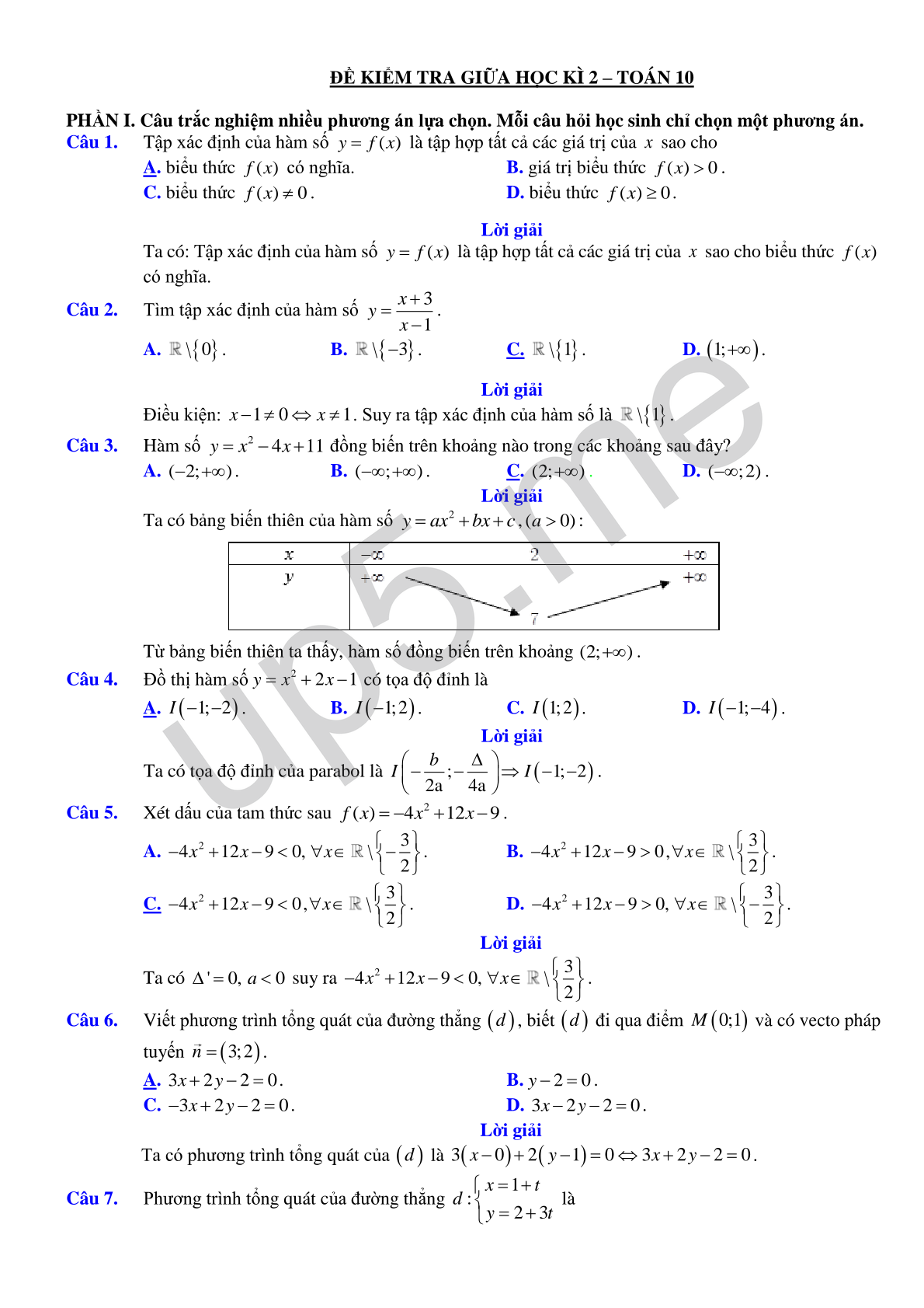 ĐỀ KIỂM TRA GIỮA HỌC KÌ 2 – TOÁN 10